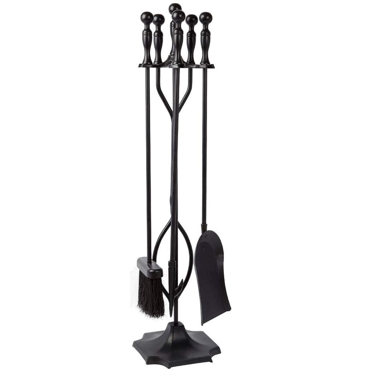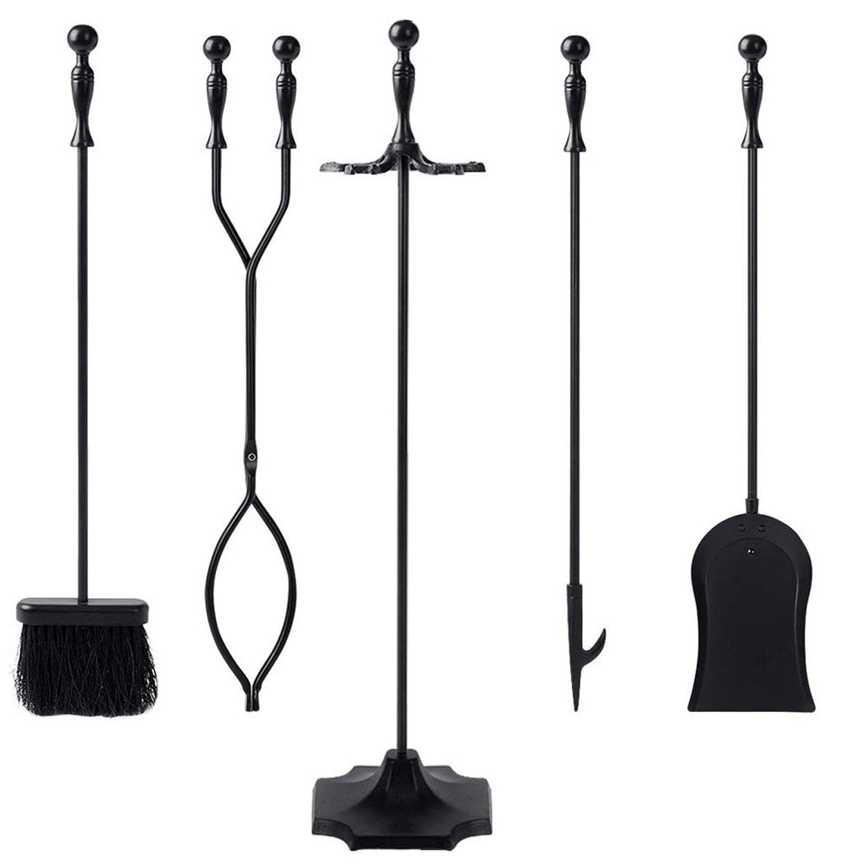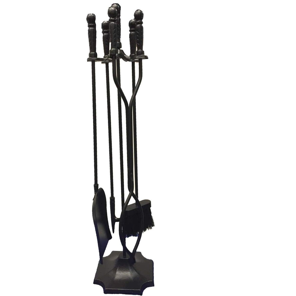 Shop4Omni Black Wrought Iron Fireplace Fire Pit Toolset – 5-piece Tool Set