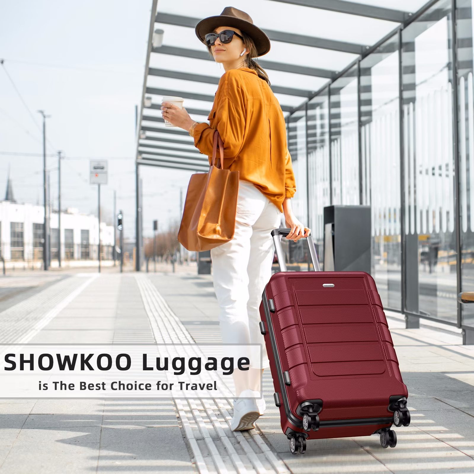 SHOWKOO Carry-on 20″ Hardside Luggage with Durable Spinner Wheels TSA Lock (Red)