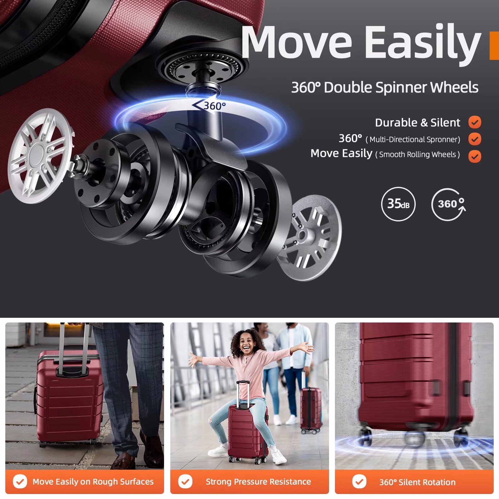 Top Quality Luggage: Made of lightweight and extremely durable ABS+PC material, it is scratch-resistant and wear-resistant, not afraid of scratches, and not easy to deform. The lightweight and unburdened 20-inch suitcase (only 6 Ibs) meets most American International Airlines’ carry-on luggage size requirements. Can be placed on the elevated planes of most aircraft, and is the best choice for carry-on luggage for airplanes. Silent Double-row Universal Wheels: The brand new soft TPU and lubricating ball in the wheel make the suitcase rotate 360° wantonly, and move quietly and smoothly. The suitcase has passed the 100% perfect drop test. The baggage also passed the walking test (professional baggage quality test: the baggage can carry 15 kg, and the speed is 10 km/h 40 km). Adjustable & Sturdy 3-step Aluminum Handle: This can be adjusted to different heights to suit different people. The smooth up-and-down design makes it more comfortable to carry. There are easy-to-grip handles on the top and sides of the suitcase, and two soft rubbers are designed to protect your fingers when lifting heavy objects. Secure Combination Lock: The TSA lock installed on the side of the suitcase has a resettable code to prevent theft and ensure that only you or the TSA agent can easily access your items when traveling. The zipper is not easily penetrated by sharp tools, which can better protect the items in your luggage and protect privacy. Scientific Design To Maximize the Space: Large-capacity design, internally equipped with partition nets and cross belts, the small bag between the hard shells can store toothbrushes, wallets, cosmetics, etc. Make you place items in an orderly manner