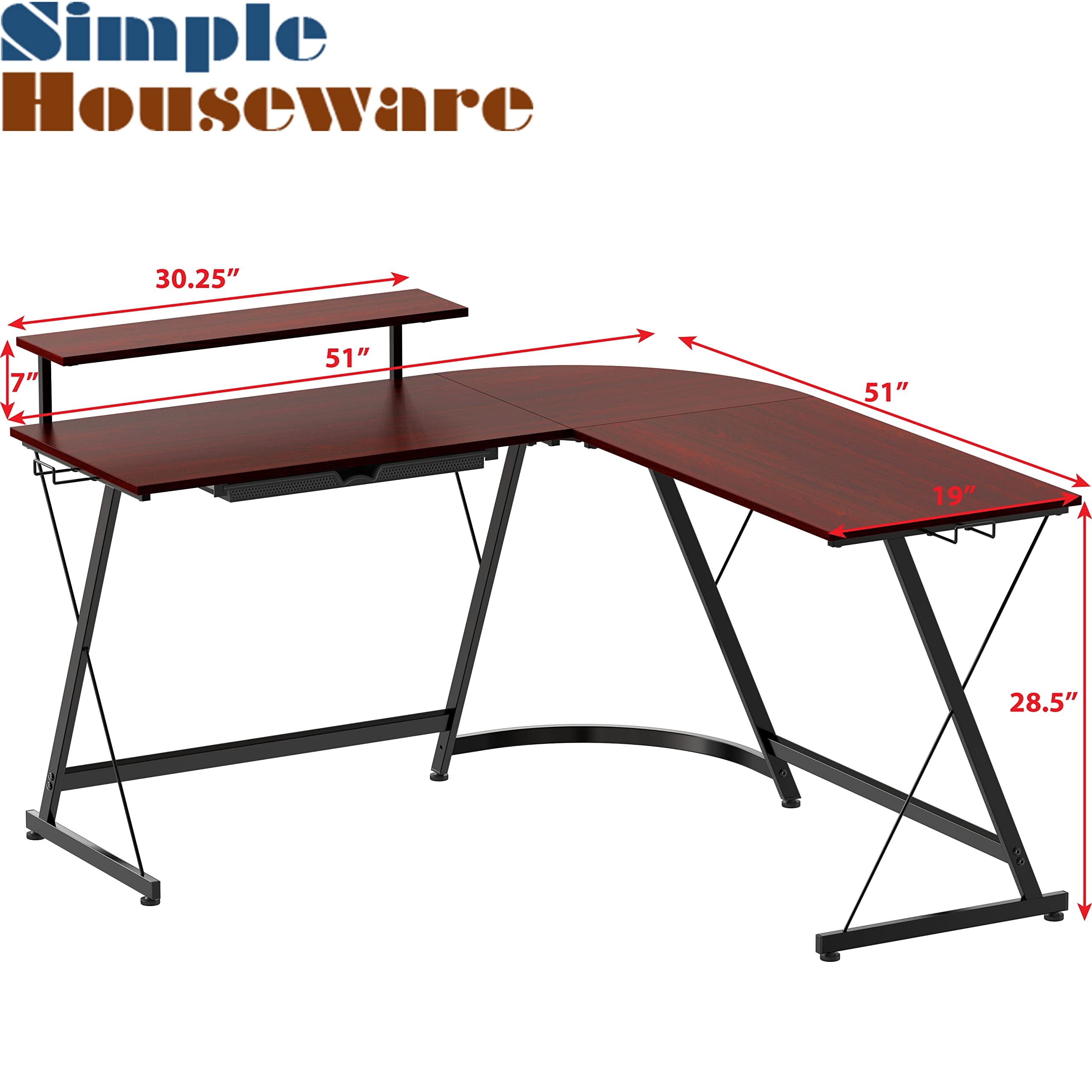 SHW Gaming 51″ L-Shaped Desk with Monitor Stand, Cherry Brand: SHW Color: Cherry Material: Engineered Wood, Steel Special Feature: Monitor Stand Dimension: 51″ W x 19″ D x 28.5″ H Quantity: 1