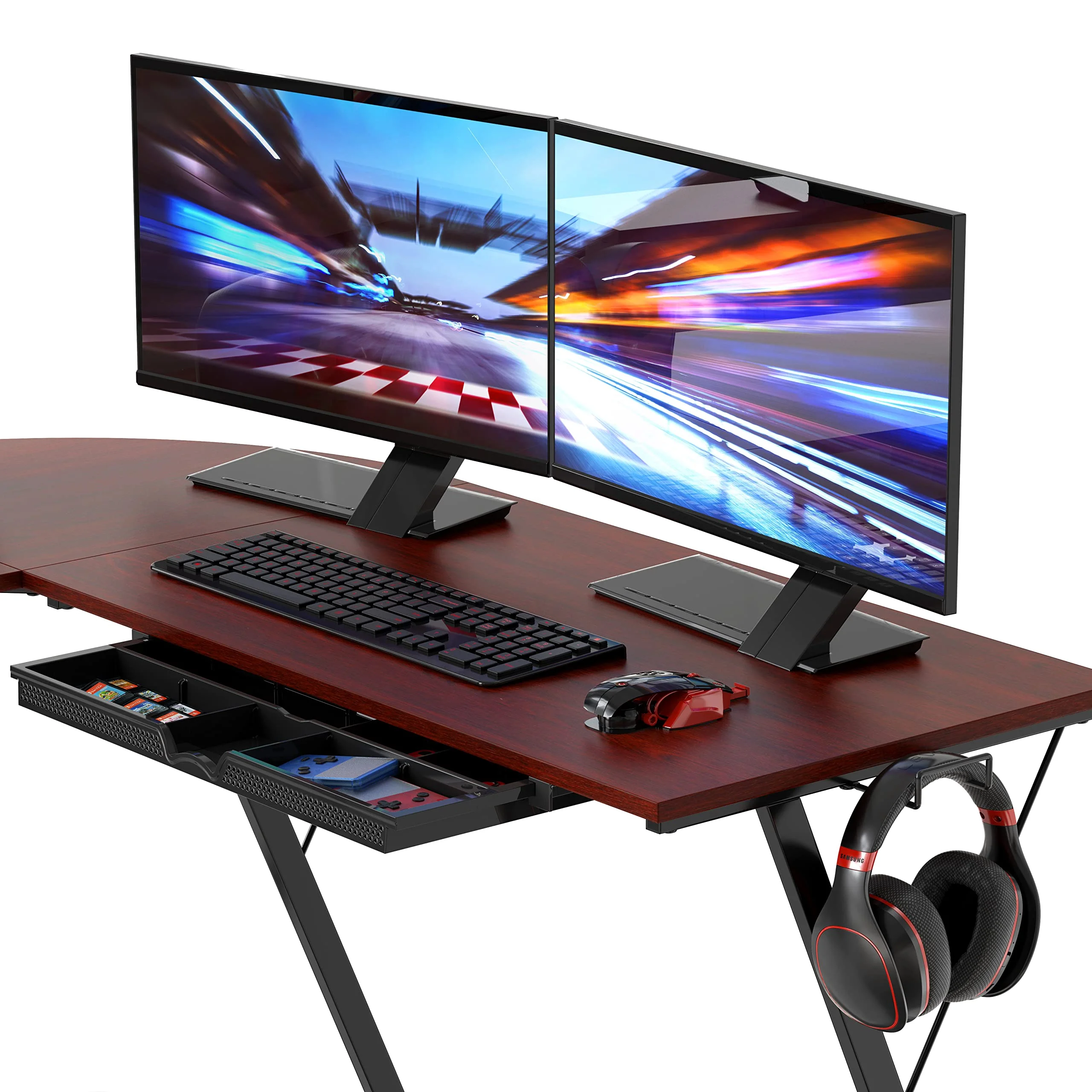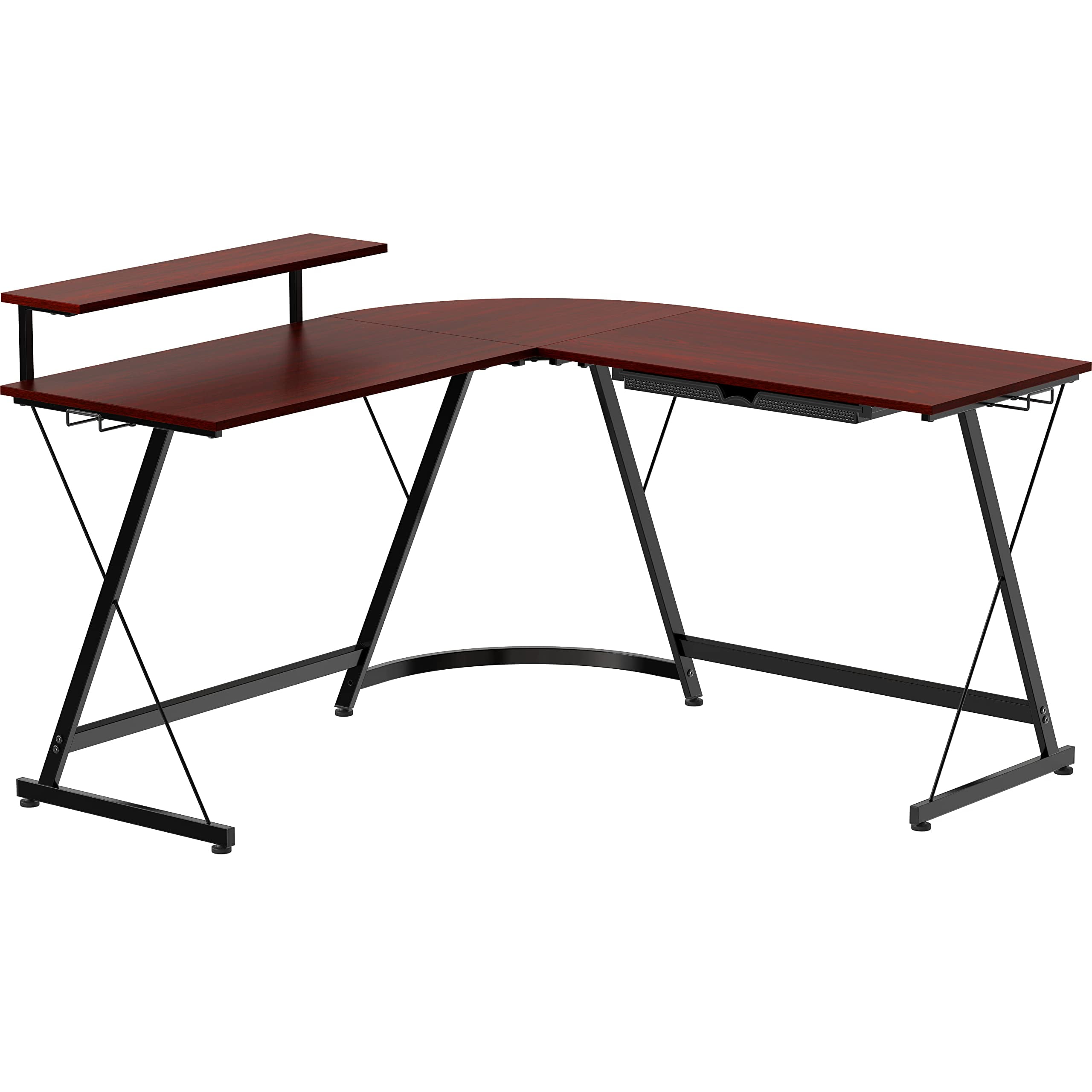 SHW Gaming 51″ L-Shaped Desk with Monitor Stand, Cherry