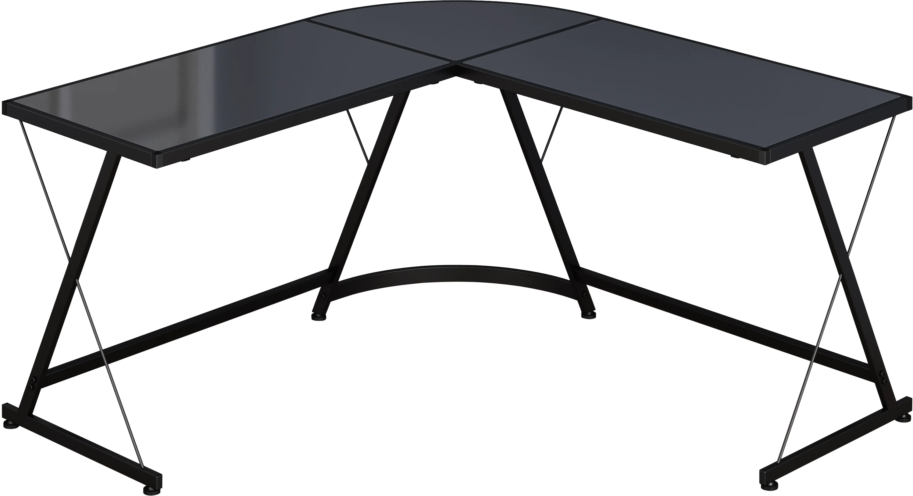 Material: Metal frame, powder coated finish, tempered safety glass. L-shaped 3 pieces corner table computer desk saves space in home office, dorm room. Foot rest bar allows for more comfort, Adjustable glides stabilizes / balances the desk on uneven floors. Measures 51″ W x 19″ D x 28.5″ H (51″ overall depth); Assembly required. Patent No: US D891820S1