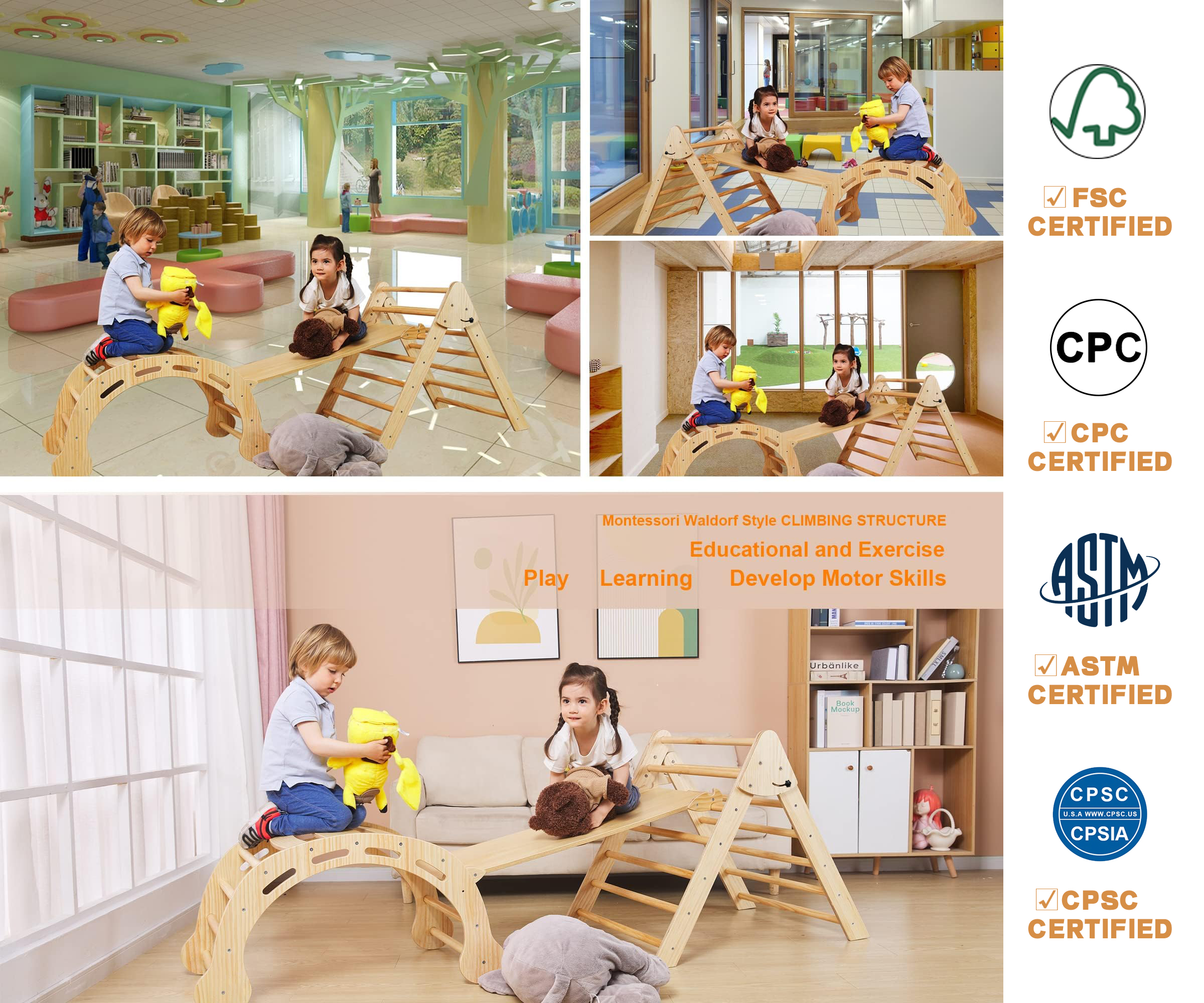 SHWWQUE Kids Montessori Climbing Toys Set with Climbing Ladder, Natural, 41 x 6.25 x 20.80 in Designed for children aged 1-6 years, promoting physical activity and imaginative play Encourages climbing, jumping, and fort-building, transforming your home into a private playground Upgraded 8-in-1 design includes multiple configurations: triangle climber, arch ramp, rock climber, slide, and rocking chair Versatile for indoor and outdoor use, suitable for carpeted areas or yard lawns Lightweight and portable, making it easy to move and set up in different locations Helps develop physical fitness, balance, and hand-foot coordination in a safe environment