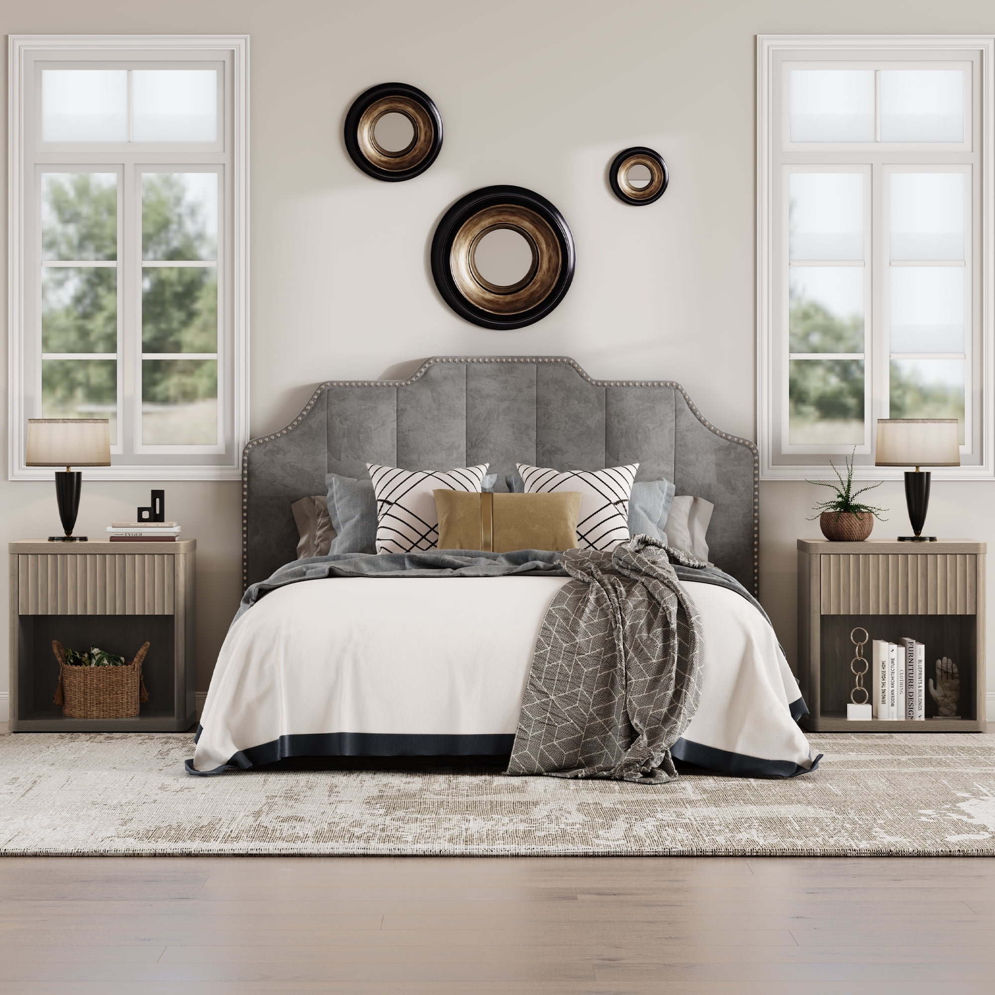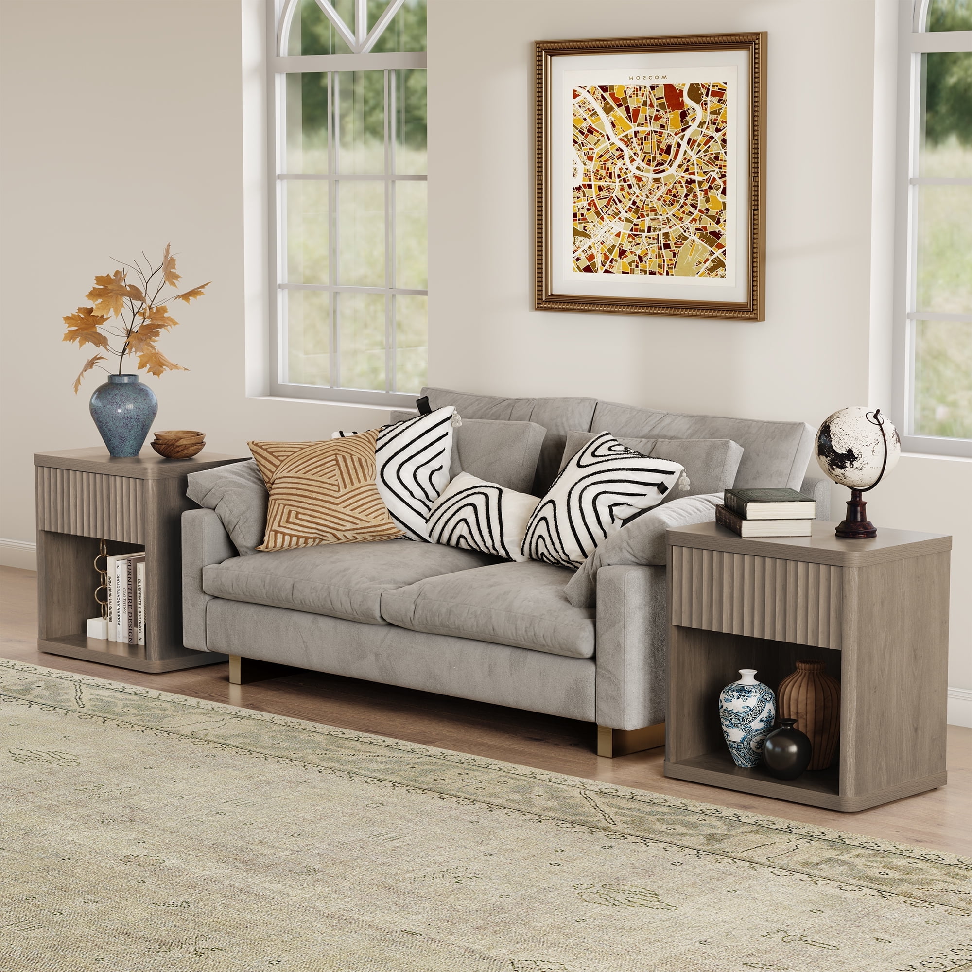 SICOTAS Fluted Nightstands for Bedroom Set of 2, Farmhouse Bedside Tables with Drawer & Open Shelf, Wood End Table for Living Room in Grey