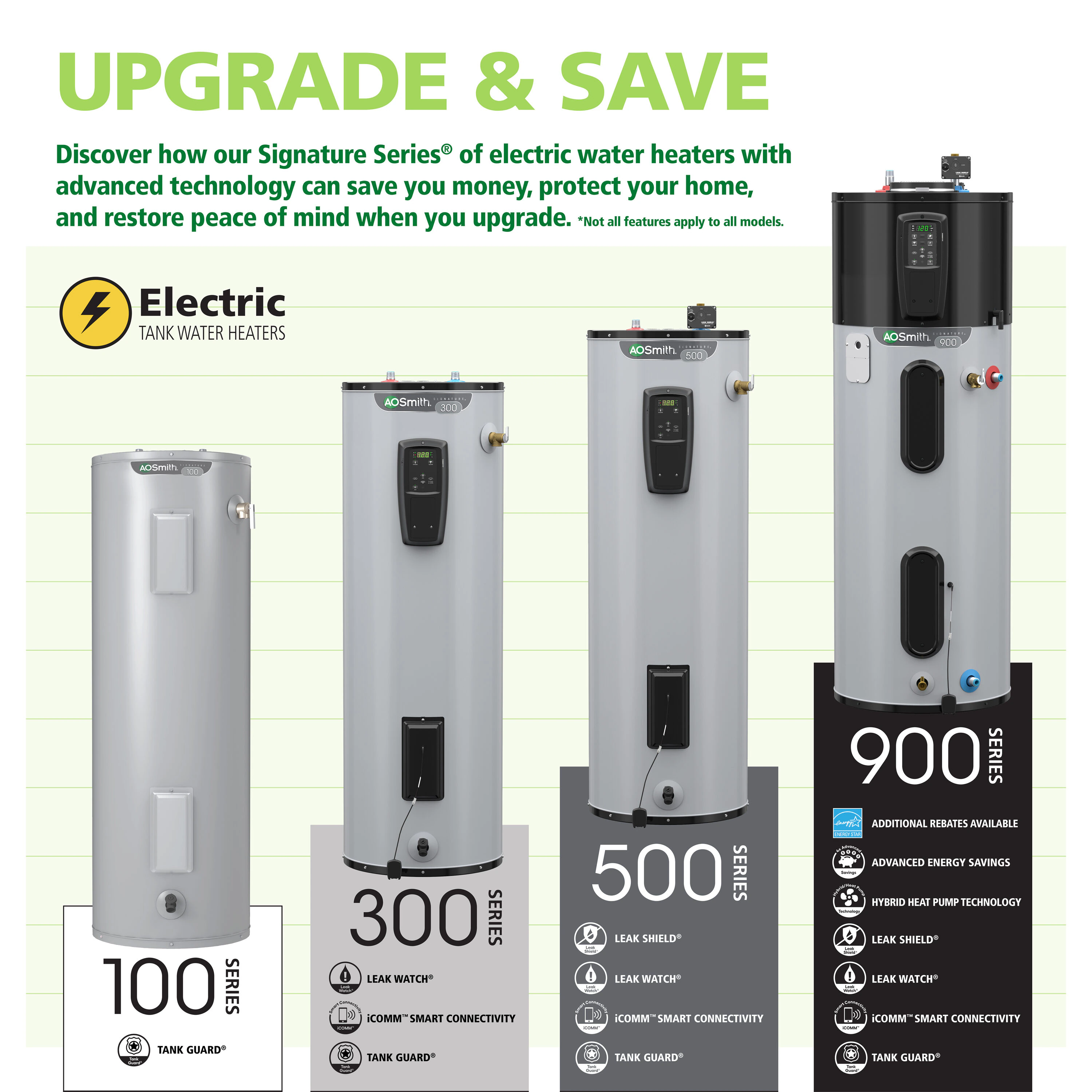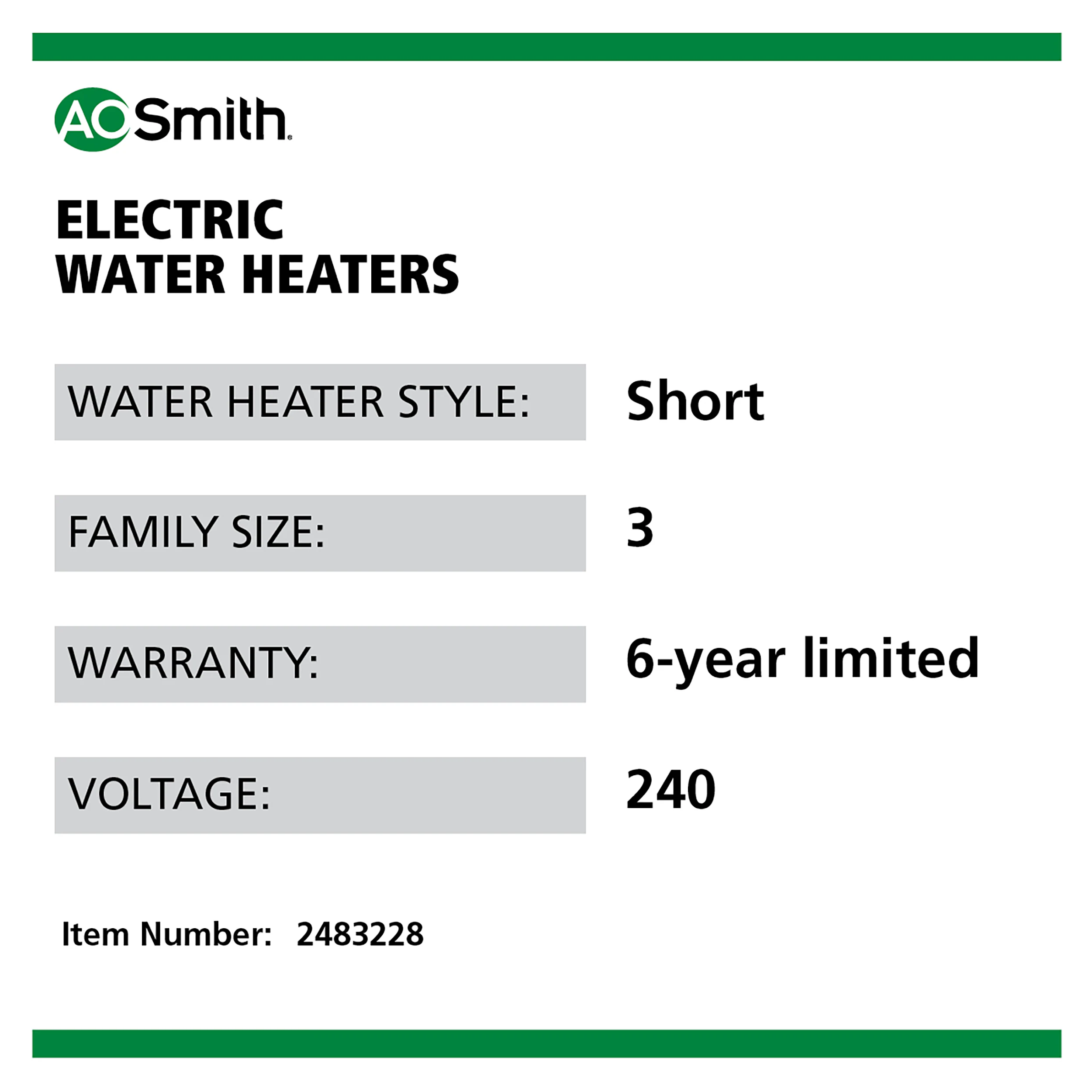 A. O. Smith’s Signature 100 Series 40-Gallon Electric Water Heater is designed to provide efficient and reliable hot water for households with 2 to 3 people when sized appropriately. It’s designed to last with features like dual copper heating elements, a protective anode rod and a ceramic fused tank shield to reduce corrosion and provide ultimate tank protection. It also has a self-cleaning dip tube that minimizes sediment build-up and extends the overall life of the hot water heater. This added protection comes with a 6-year limited warranty to give you additional peace of mind. Want to save money on your energy bills? This model operates at a 0.92 Uniform Energy Factor (UEF) which can reduce your energy consumption compared to less efficient models. Call 1-877-GOLowes to get this water heater installed.