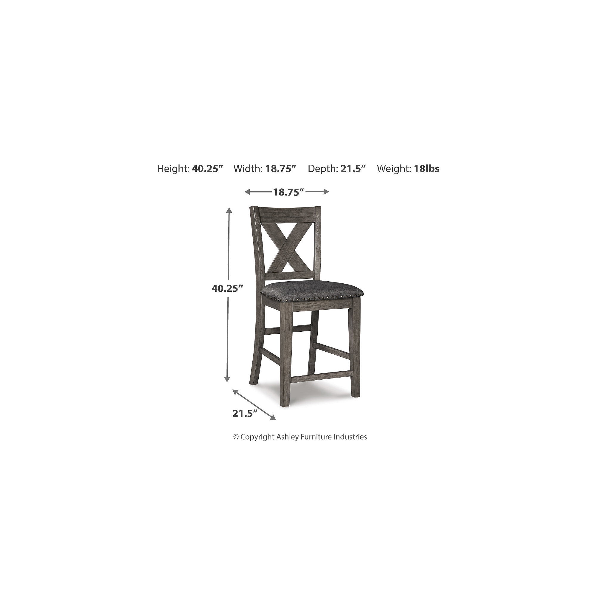 Made with solid acacia wood Antiqued gray wash finish Polyester upholstery over foam cushioned seat Nailhead trim Assembly required