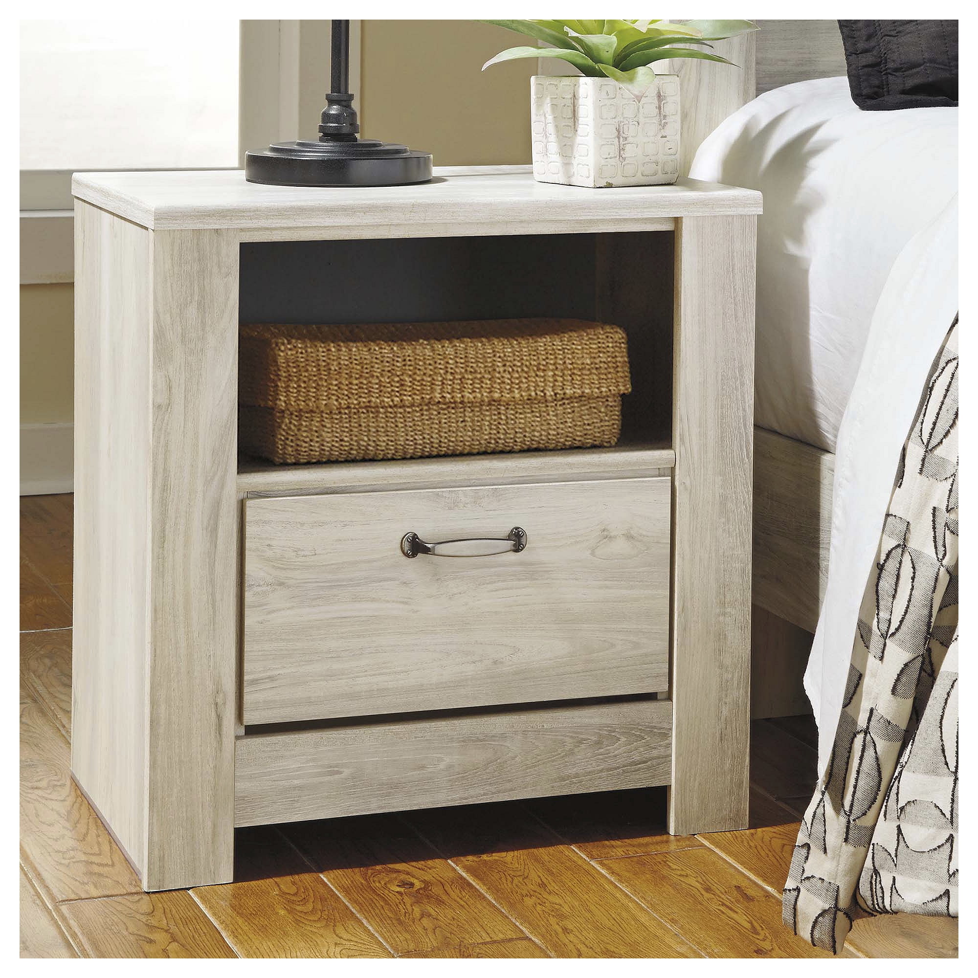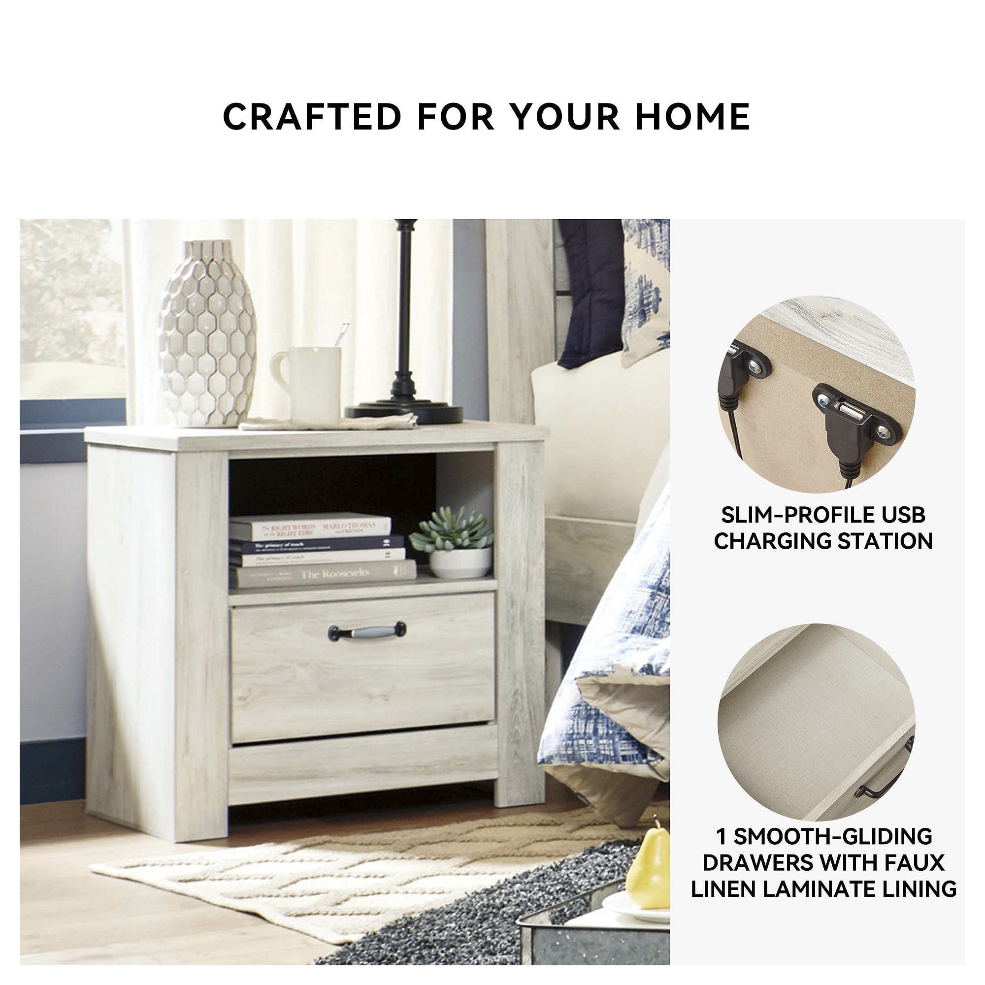 Signature Design by Ashley Bellaby One Drawer Nightstand – Farmhouse Style, Wispy White, USB Charging, Storage Cubby, Brushed Nickel Hardware