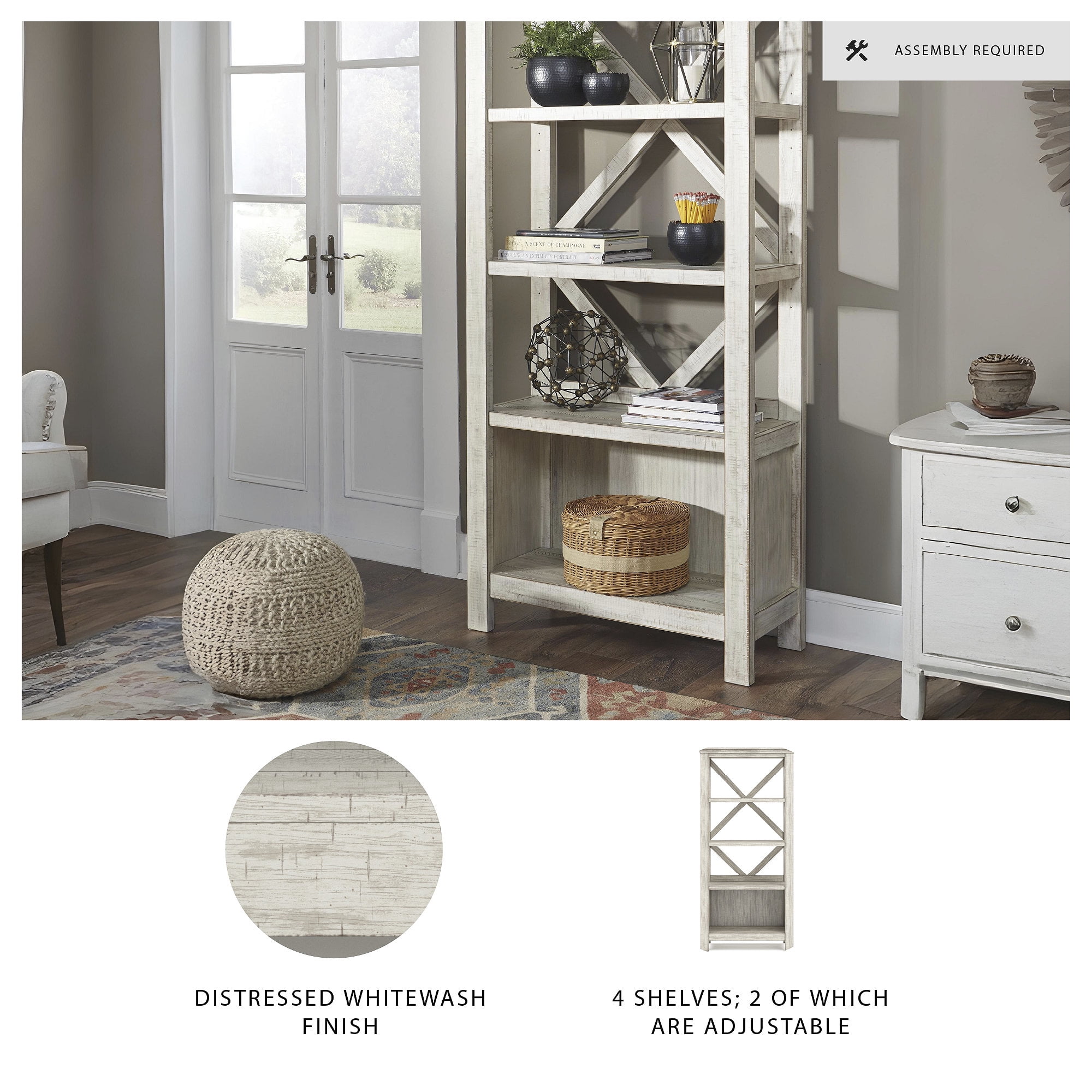 Signature Design by Ashley Carynhurst Large Bookcase, Whitewash Finish, Adjustable Shelves, Modern Farmhouse