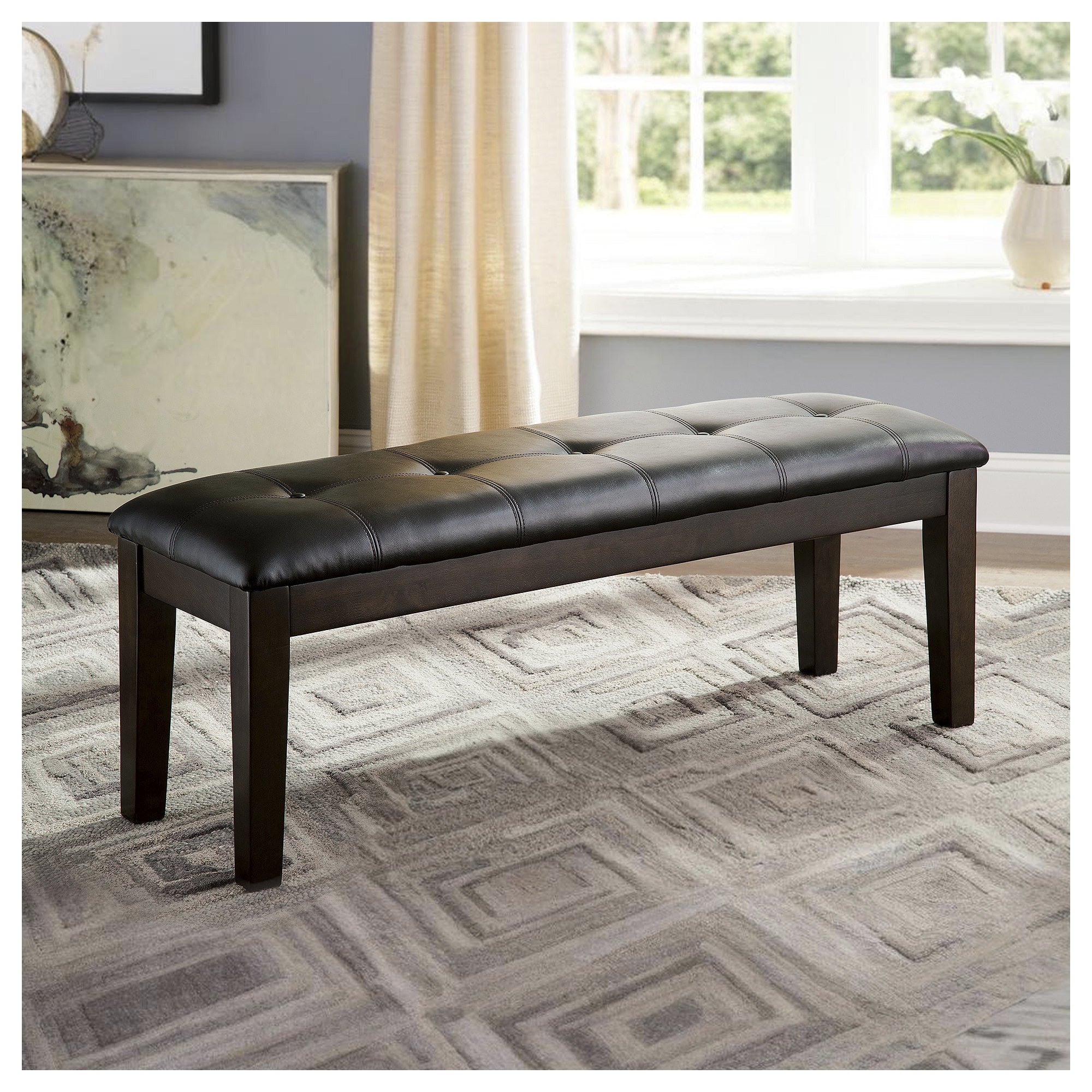 Elevate your dining experience with the addition of this stylish and comfortable dining room bench. Designed to blend feel-good elements with superb presentation, this bench features plush cushioning and button-tufted faux leather upholstery. Perfect for accommodating extra guests or adding a touch of sophistication to your dining area, this bench is both functional and fashionable.