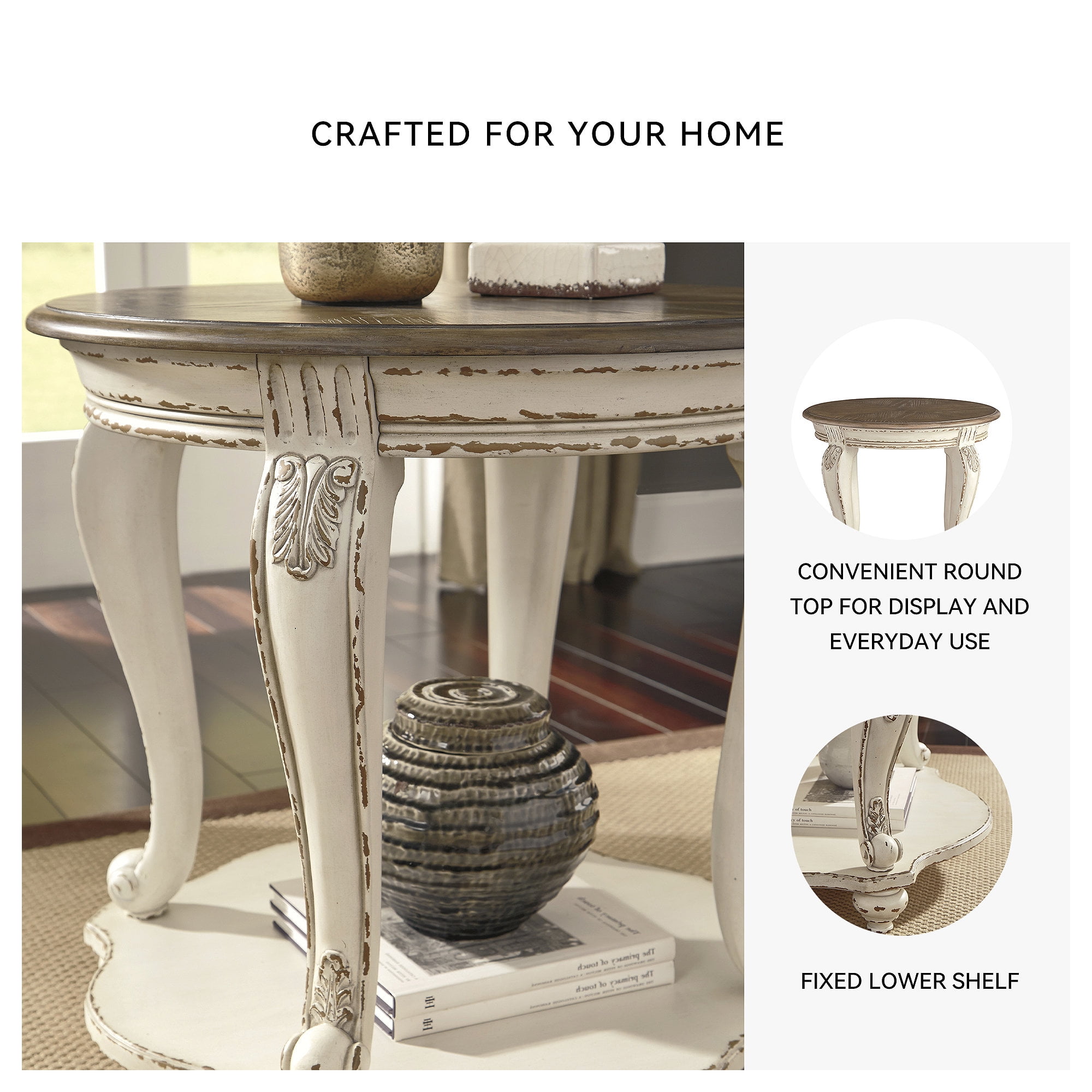 Signature Design by Ashley Realyn End Table, White and Brown Two-Tone Farmhouse Side Table with Fixed Lower Shelf