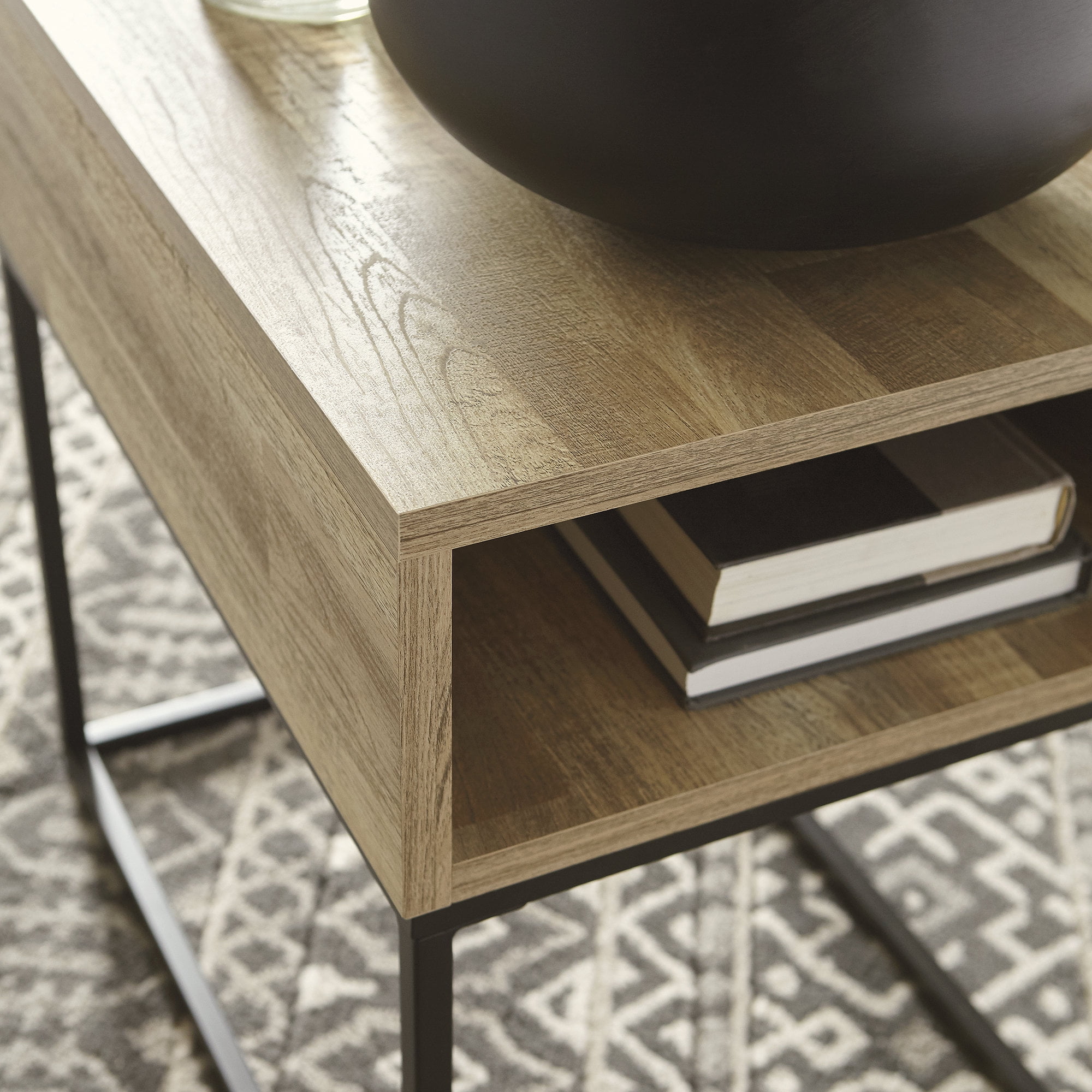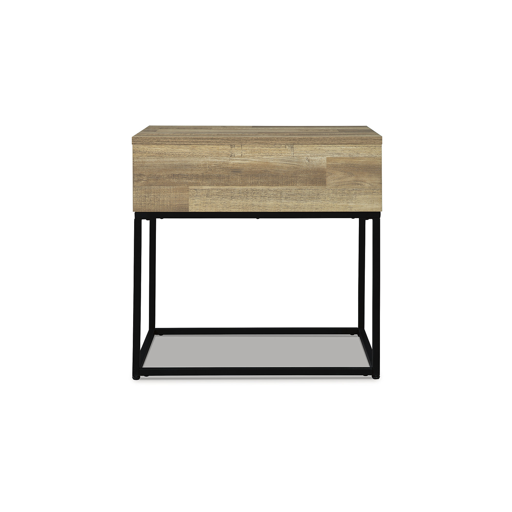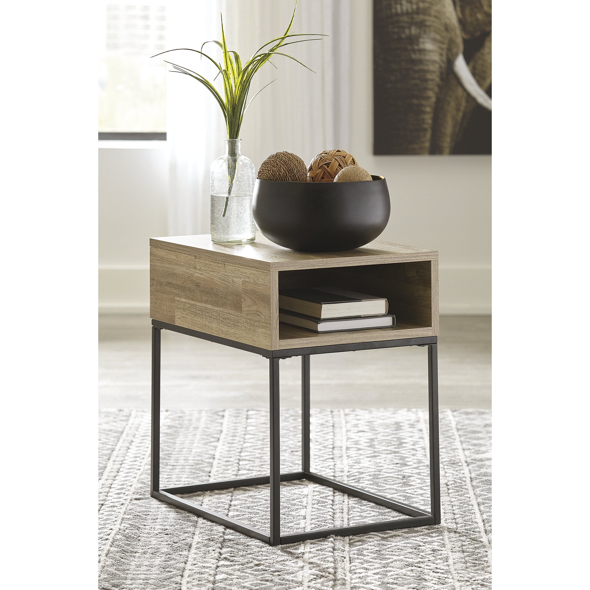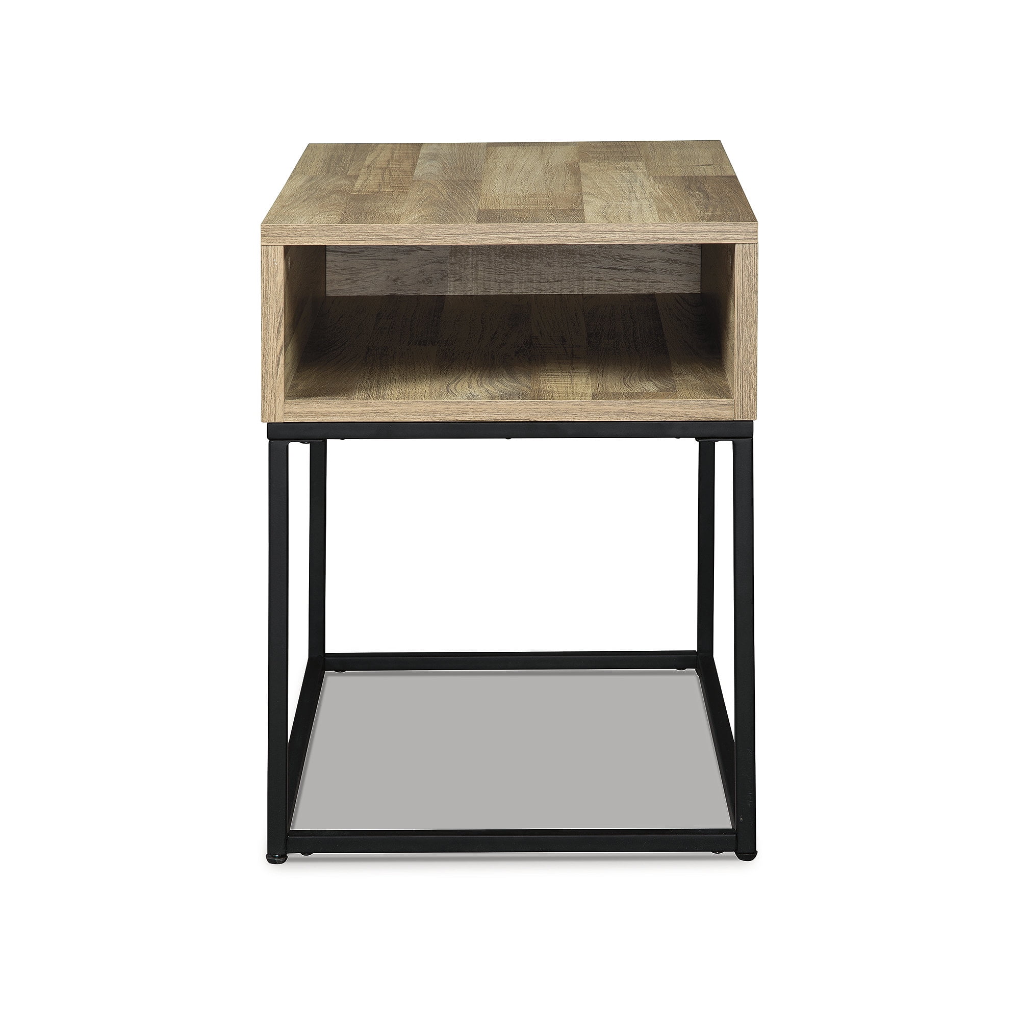 The Gerdanet end table offers a fresh take on urban style with a casual design and replicated butcher block finish. The metal base elevates the table and provides open space to add a lightness to your room.