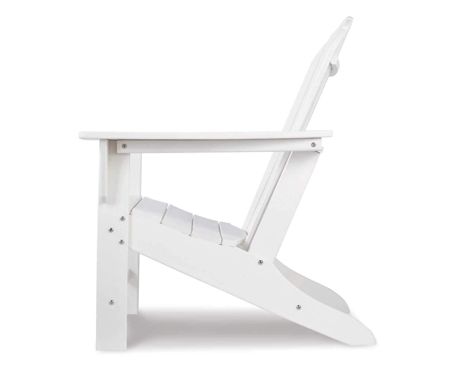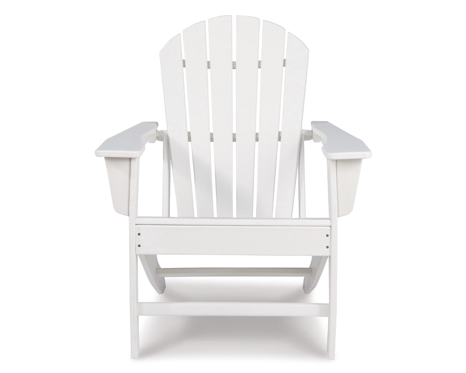 Add cottage-quaint charm to your outdoor oasis with the Sundown Treasure Adirondack chair in white. Made of MEGA TUFF™ high-density polyethylene material, it’s sure to weather the seasons beautifully. Designed to shed rainwater, the chair’s slatted styling with shell back shaping provides exceptional form and function.