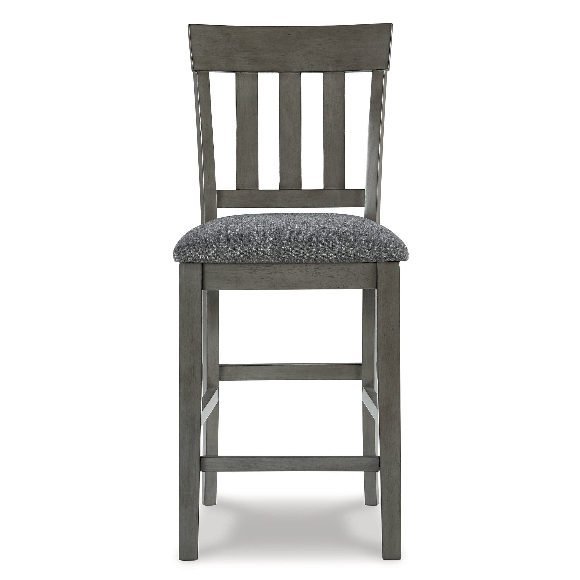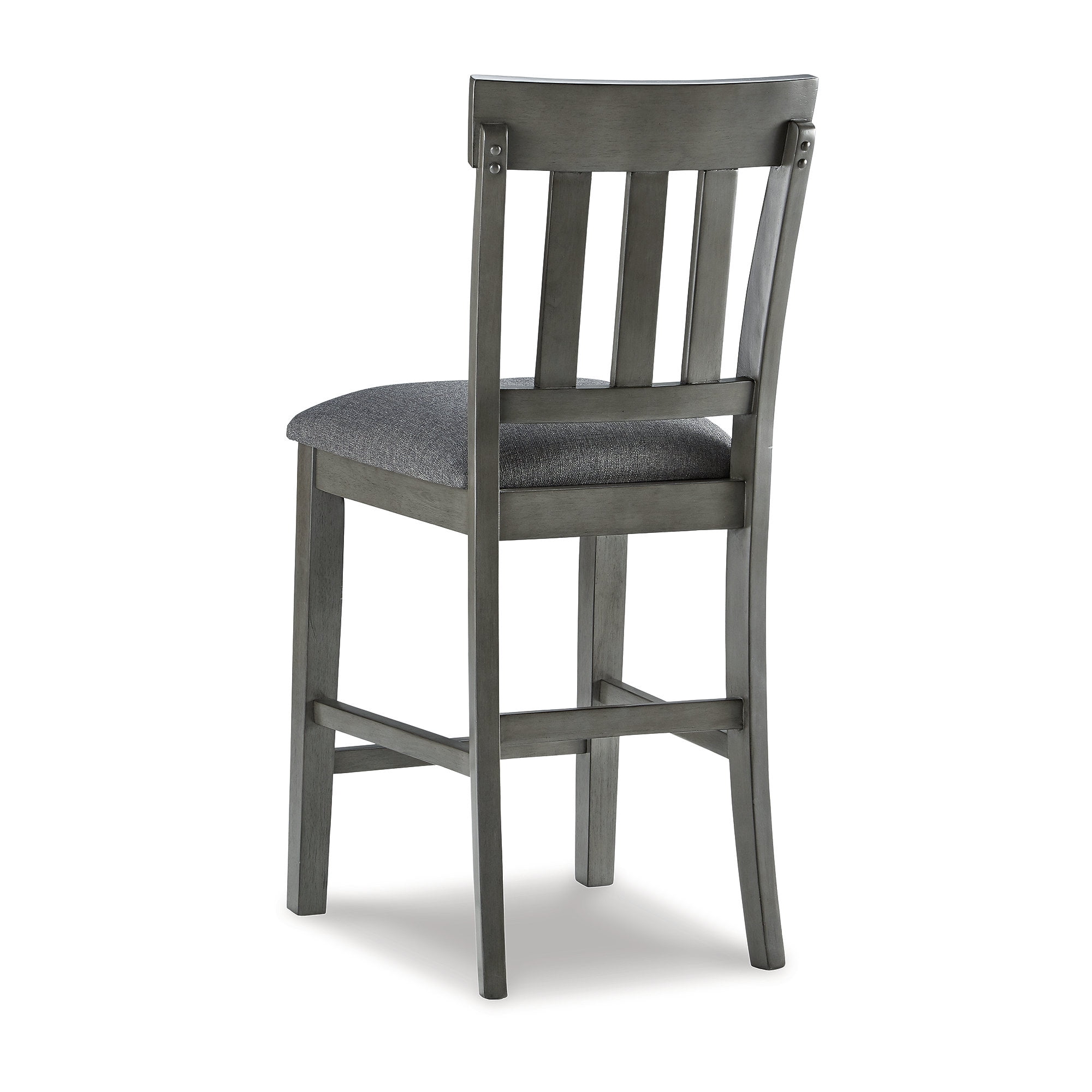 Cool and on-trend. This upholstered barstool sports a two-tone gray look for a contemporary-yet-casual feel. The cushioned foam seat in a gray textural fabric pairs seamlessly with the antiqued gray finish, while the contoured comb-back design adds a dash of geometric flair. With this chic seat, it’s easy to dine in style.