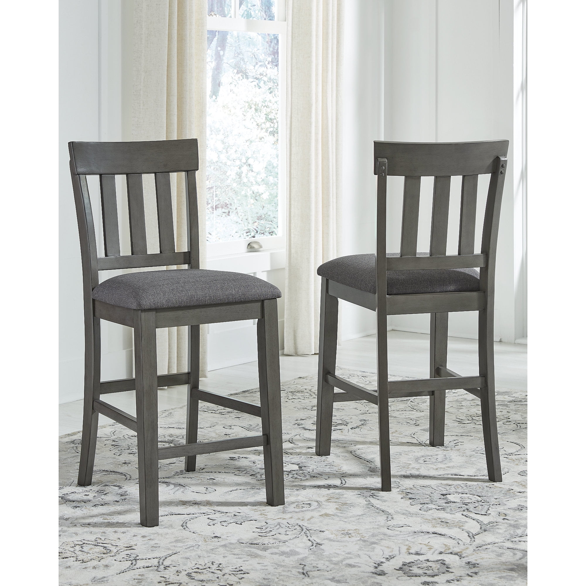 Signature Design by Ashley Hallanden Counter Height Upholstered Barstool, Set of 2, Two-Tone Gray