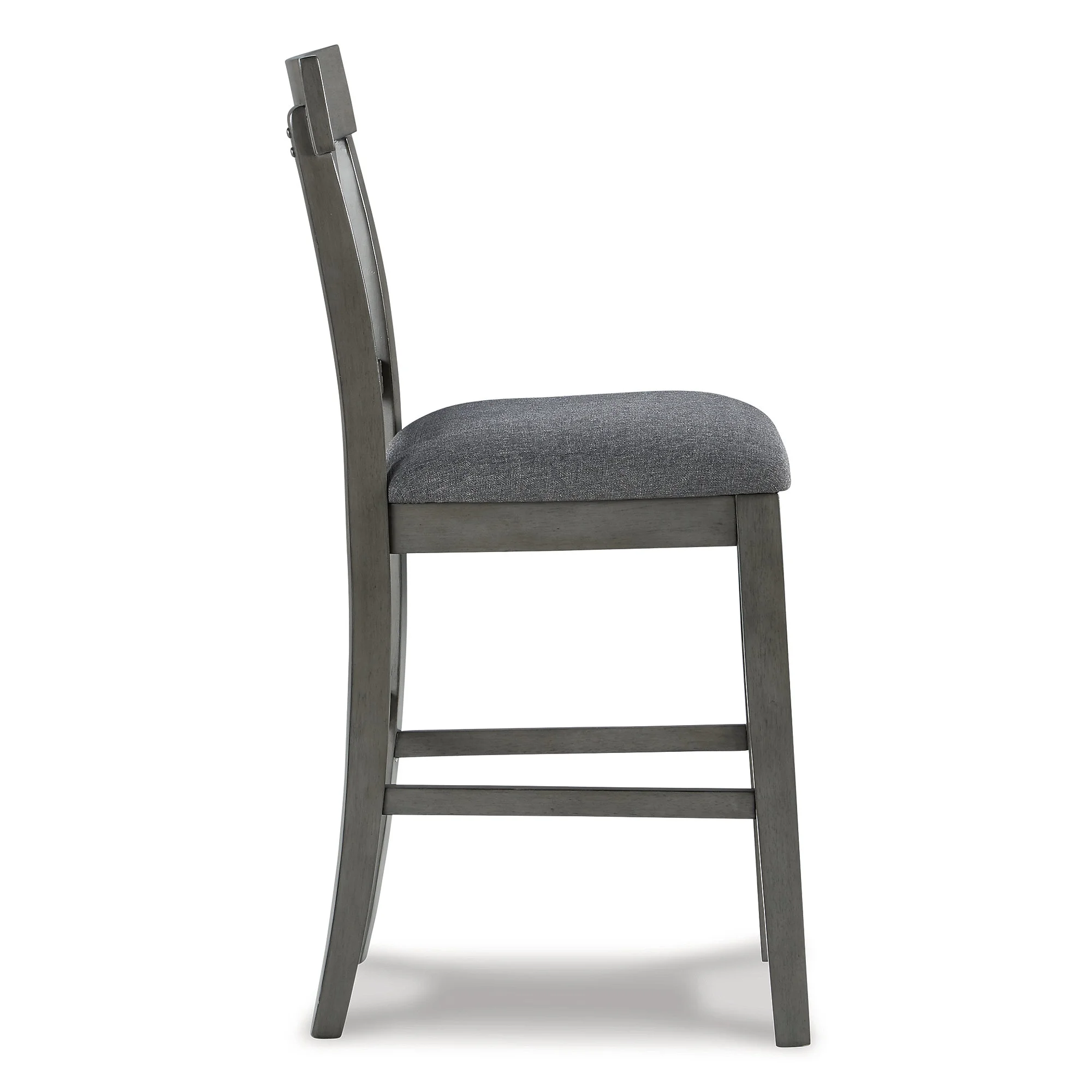 Solid Wood Construction: Made with durable solid wood for lasting strength and stability. Antiqued Gray Finish: Features a stylish antiqued gray finish that complements various decor styles. Comfortable Upholstery: Upholstered in gray textural polyester fabric with a cushioned foam seat for added comfort. Ergonomic Design: Contoured comb-back design enhances support and comfort. Easy Assembly: Assembly required, with all necessary hardware and instructions included.