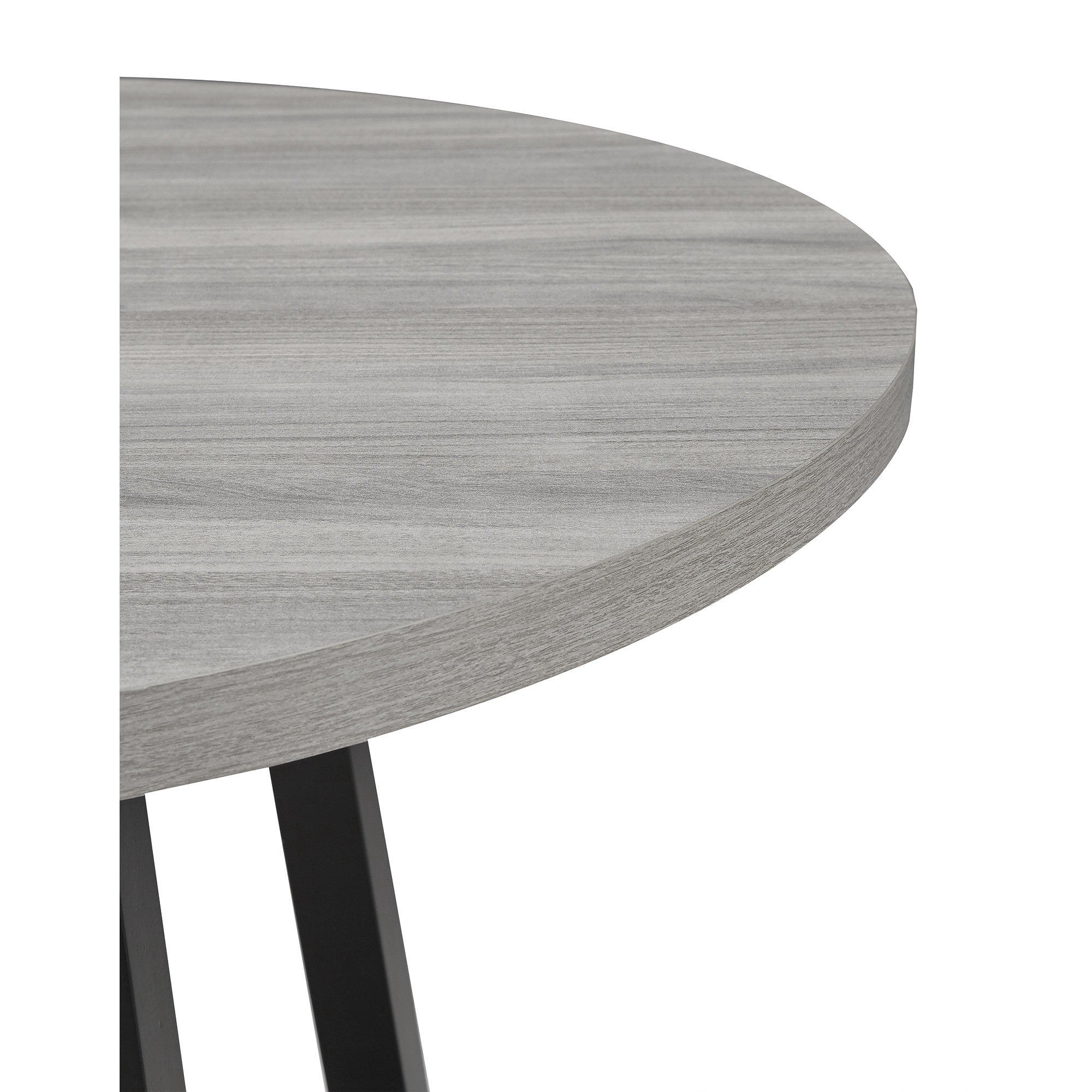 Looking to bring high style to a tight space? The Showdell round, counter-height dining table serves your needs beautifully, with a dash of industrial flair. Contrasting finishes elevate the classic shape, creating a look that keeps you coming back for seconds. Sporting the look of weathered barn wood, the top is crafted of durable melamine allowing it to weather years of family thrills and spills.