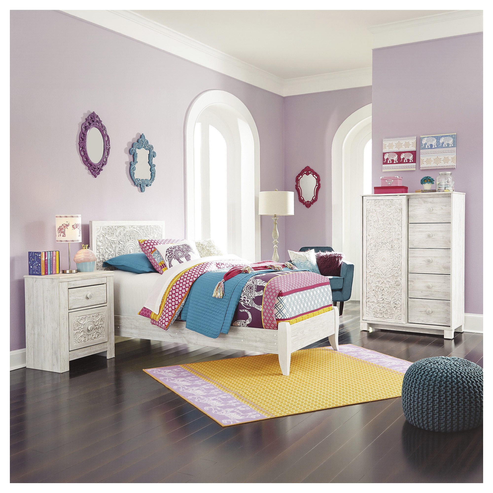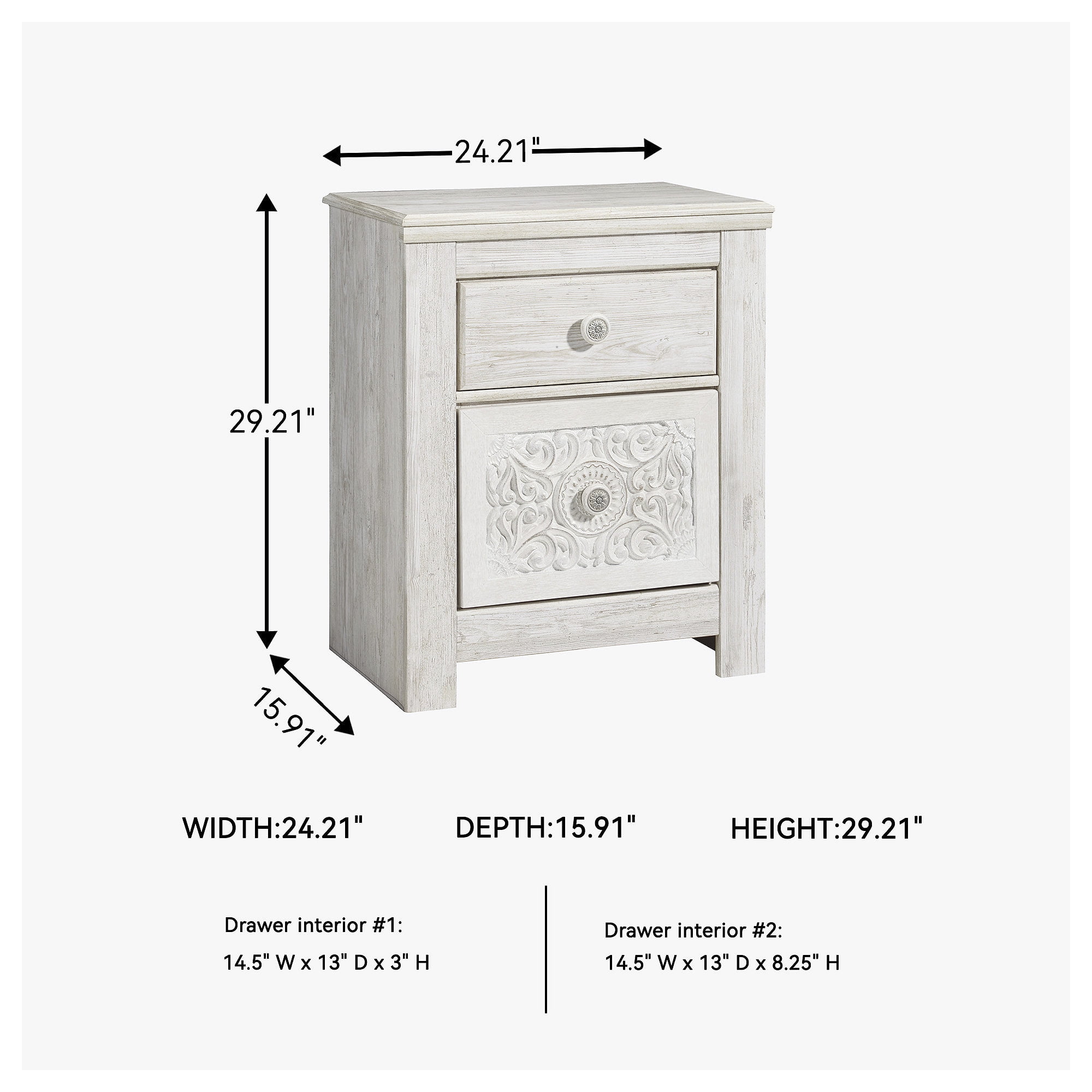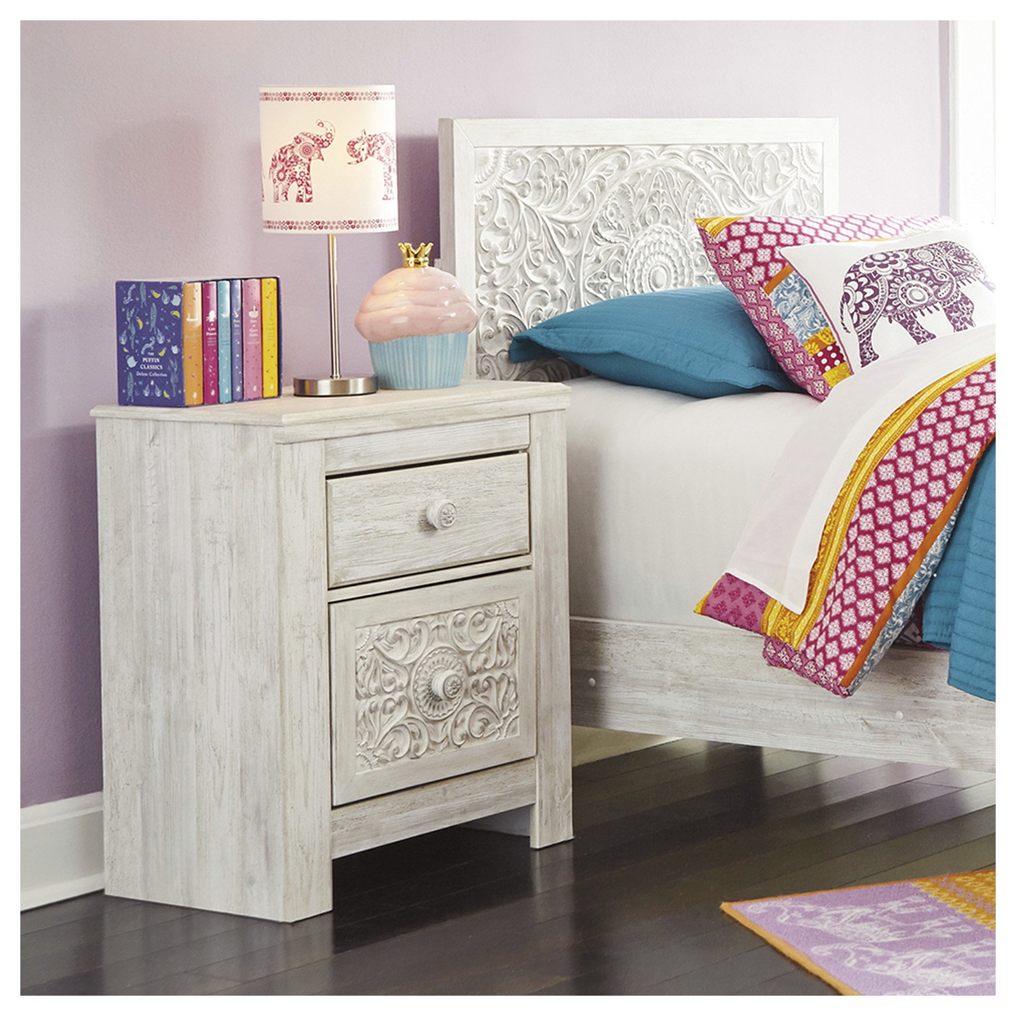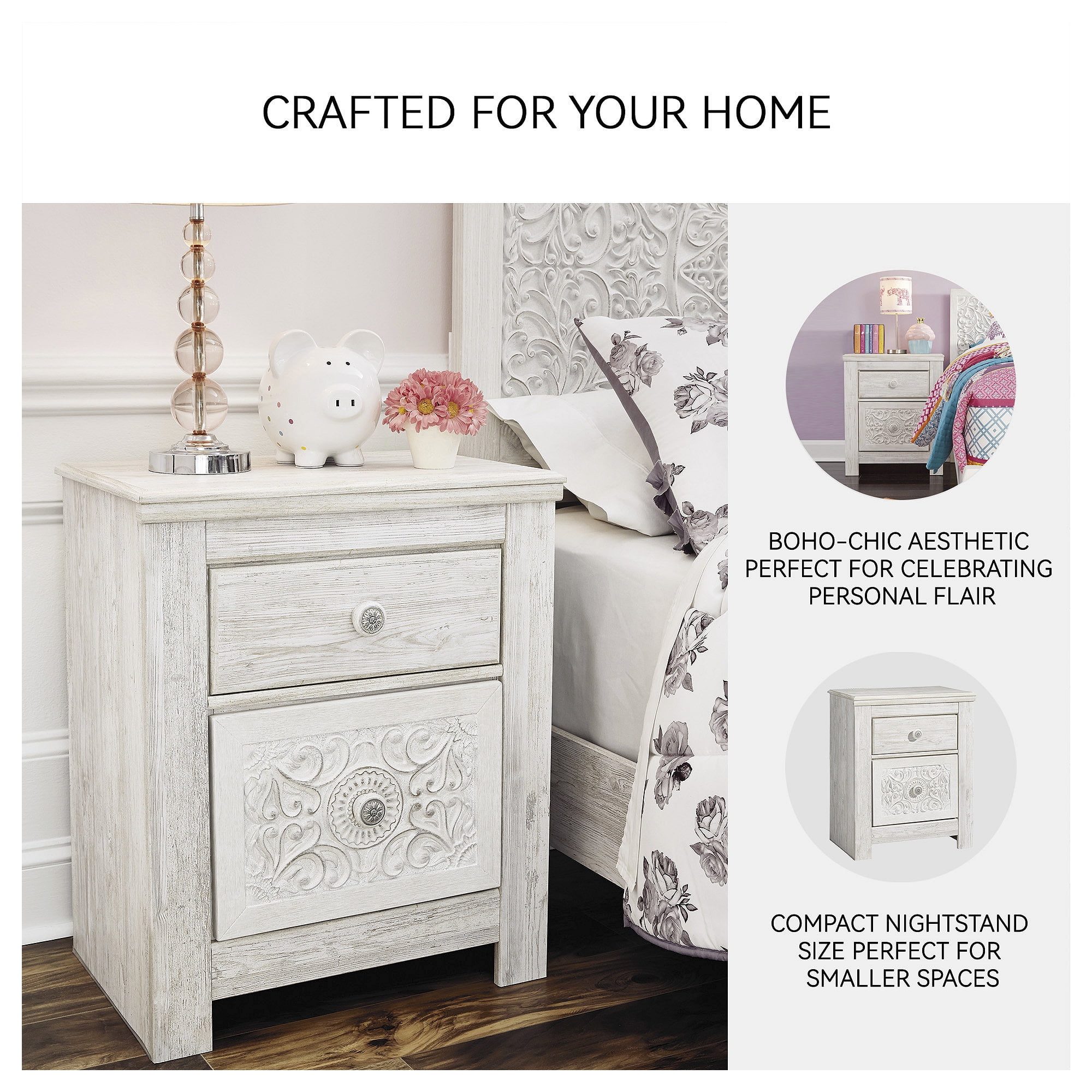 Signature Design by Ashley Traditional Paxberry 2 Drawer Nightstand, Whitewash