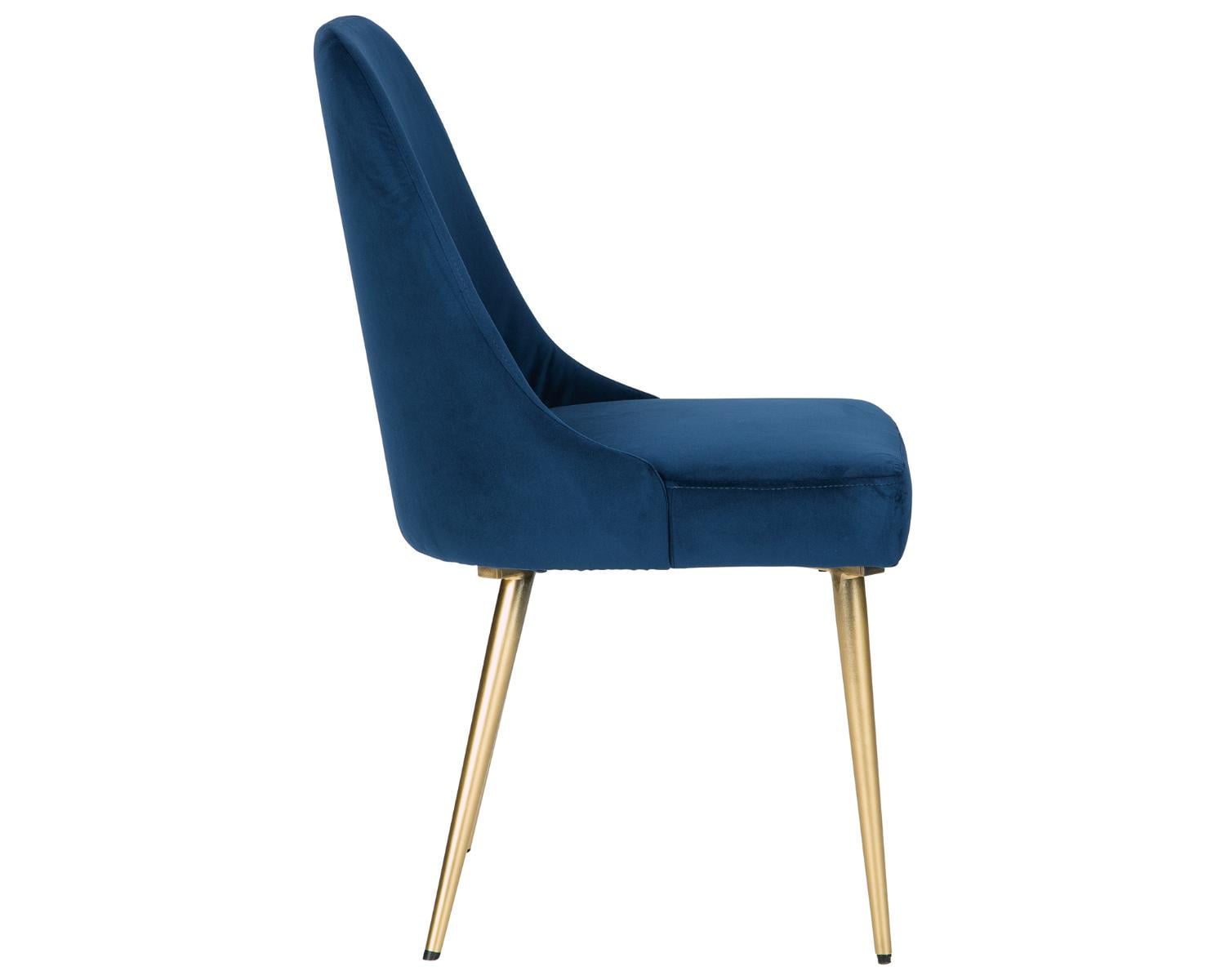 The Trischcott dining room chair is proof that you can treat yourself to high-end design—and stay beautifully within budget. Bringing a touch of mid-century inspired glam to the table, this quality-crafted bucket-style dining chair wows with goldtone tapered legs and a sumptuously soft, velvety upholstery in vibrant blue—for that pop of color you’ve been craving.