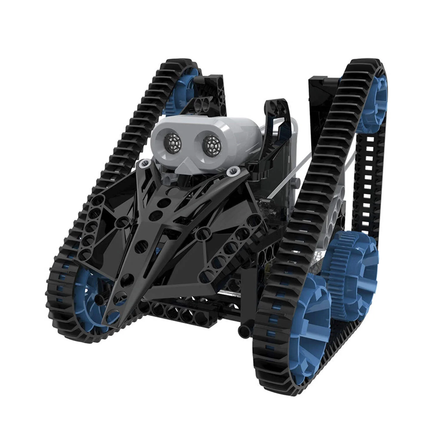 Product Description The latest installment in the award-winning Robotics: Smart Machines line, this version focuses on motorized machines that make use of continuous tracks, also known as tank treads, to move themselves and other objects around. Models are controlled by programs and an ultrasound sensor, so in addition to constructing the machines, you’ll also learn how to use the included visual programming app on your tablet or smartphone to code the programs yourself! Build a robot with two large continuous tracks that drives around and avoids obstacles in its path. The attentive tracker bot model detects your hand, moves toward it, and follows it around. Construct models of real-world smart machines, like a conveyor belt robot that carries small objects and an escalator model that carries objects up to another level. You can also assemble other fun robots including a dozer bot with a bulldozer attachment on its front end and a fire rescue robot that drives its ladder up close to other objects. Once you understand how the technology works, you can build your own robots using the kit’s 197 building pieces and create your own programs in the programming app, which is available on iOS and Android devices (tablet or smartphone required, not included). Product Information Ages: 8+ Experiments: 8 Piece Count: 197 Manual Pages: 60 Product Dimensions: 19.1 x 13 x 3.8 in. Product Weight: 3 lbs Manual Dimensions: 8.25 x 11.5 in. Batteries Required: AA (3) Country of Origin: Taiwan Year Released: 2019 Awards 2019 Parents’ Choice Silver Award NGSS Correlations 3-5-ETS1-2 Engineering Design 3-5-ETS1-3 Engineering Design 4-PS3-4 Energy Downloads Complete Manual Download Hi-Res Images Download the Programming and Controller App: Download the 3D Digital Assembly Instructions App: