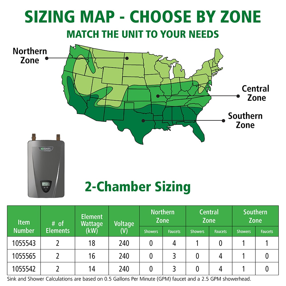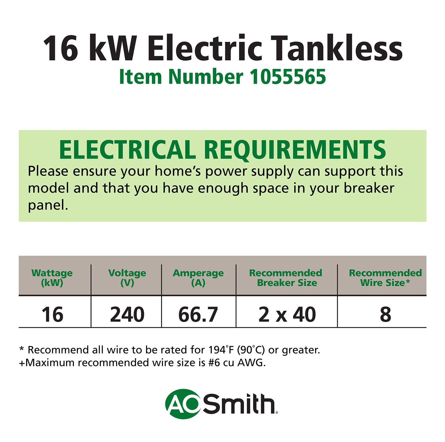 Equip your home to deliver continuous hot water for 1 shower (calculations are based on a 2.5 GPM showerhead in the southern zone) by installing this A. O. Smith Signature Series tankless electric water heater. Perfect for applications such as cabins, apartments and small homes, this unit only heats water when it’s needed for potential energy and money savings. This tankless hot water heater also mounts on the wall to save you valuable storage space, and the soft start design enables a softer electric draw when powering on to reduce light dimming. Keep in mind that professional installation is recommended for a tankless water heater since these units typically require greater electrical supply capacity than standard tank-type models. Please ensure your home can support this model and that you have enough space in your breaker panel. Call 1-877-GOLowes to get this water heater installed.