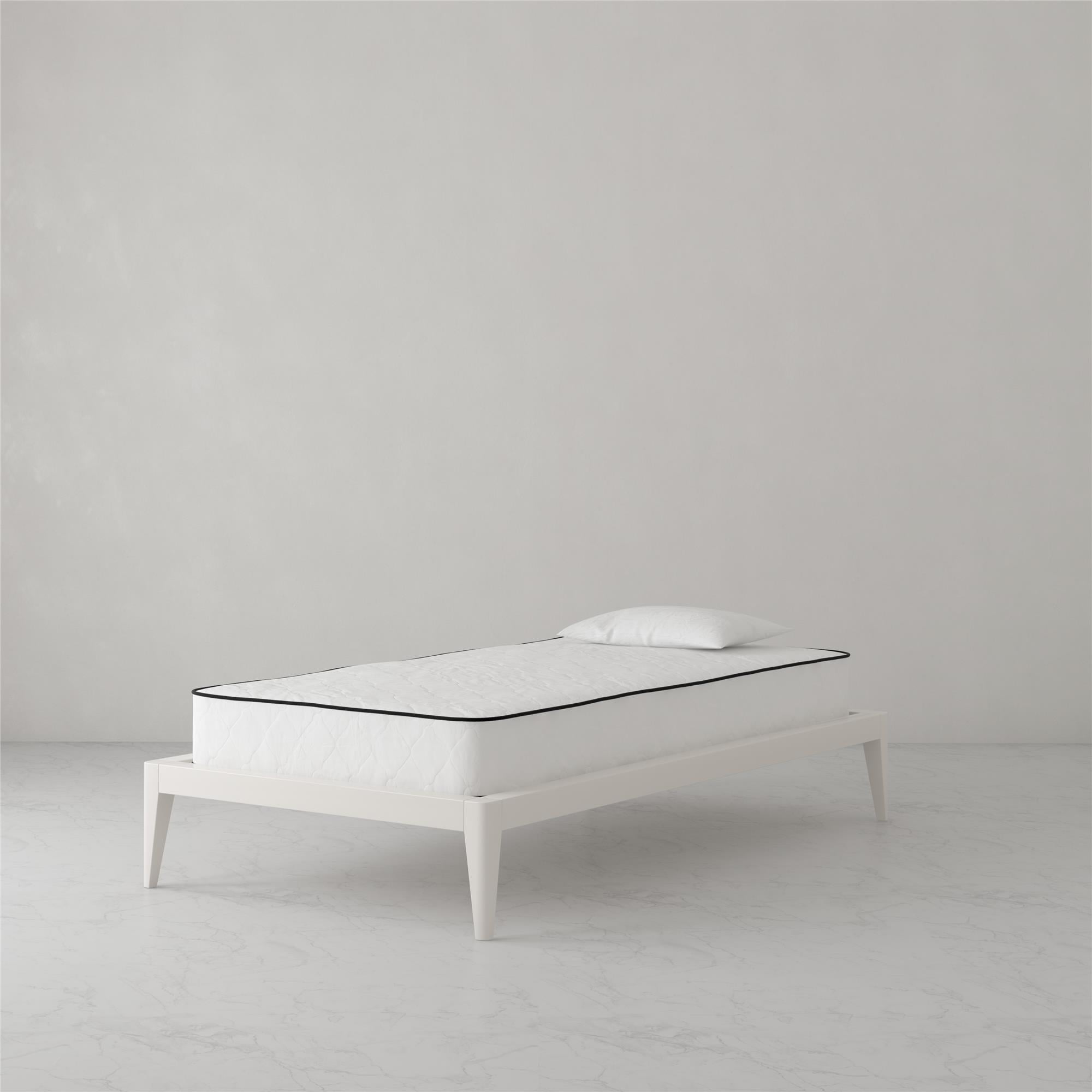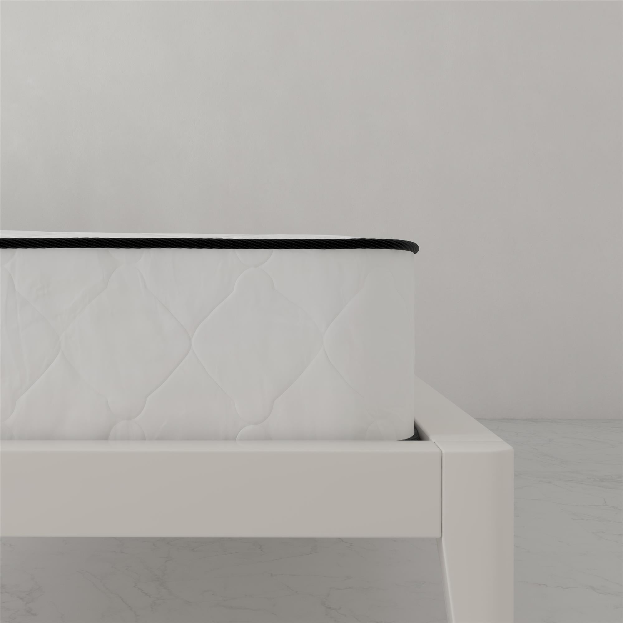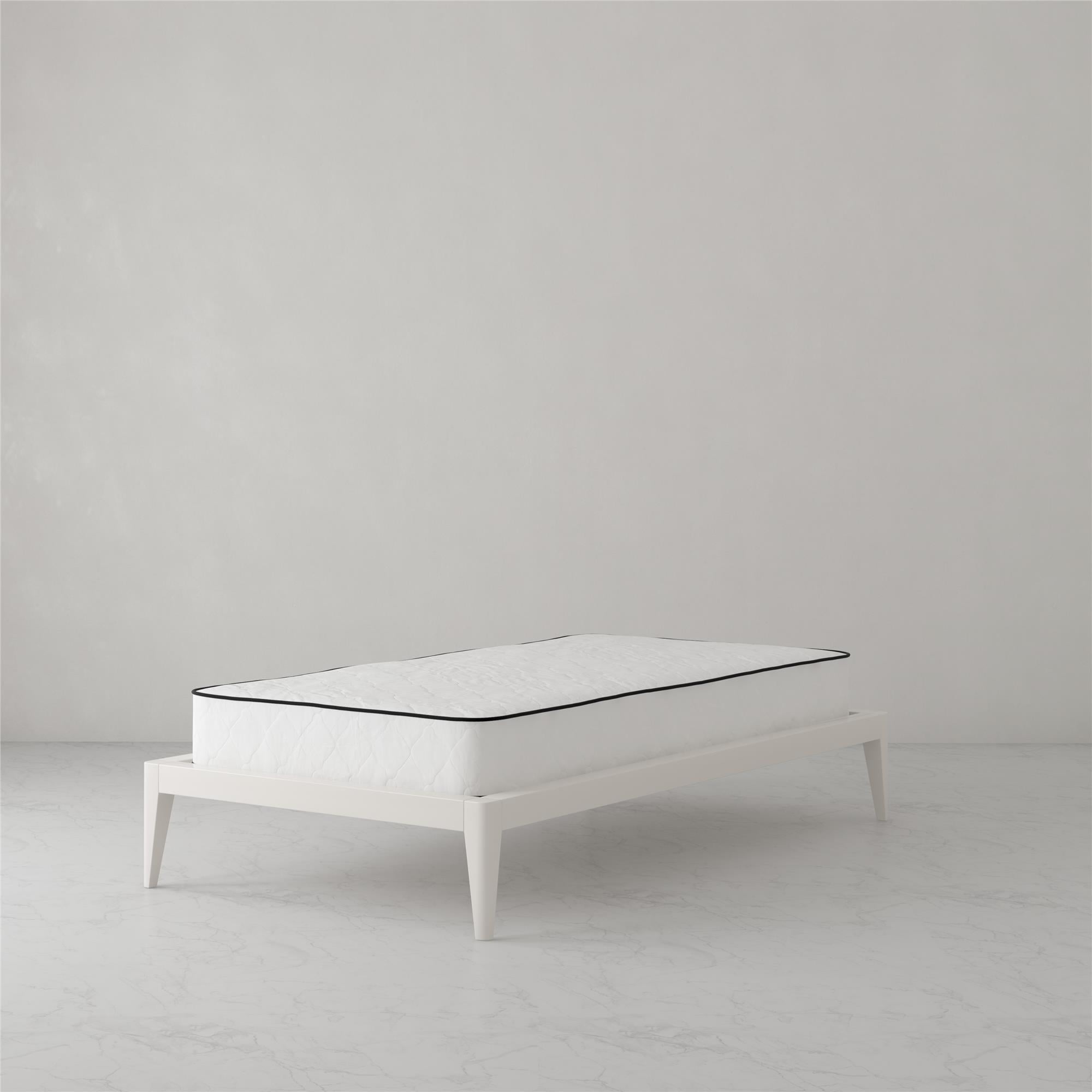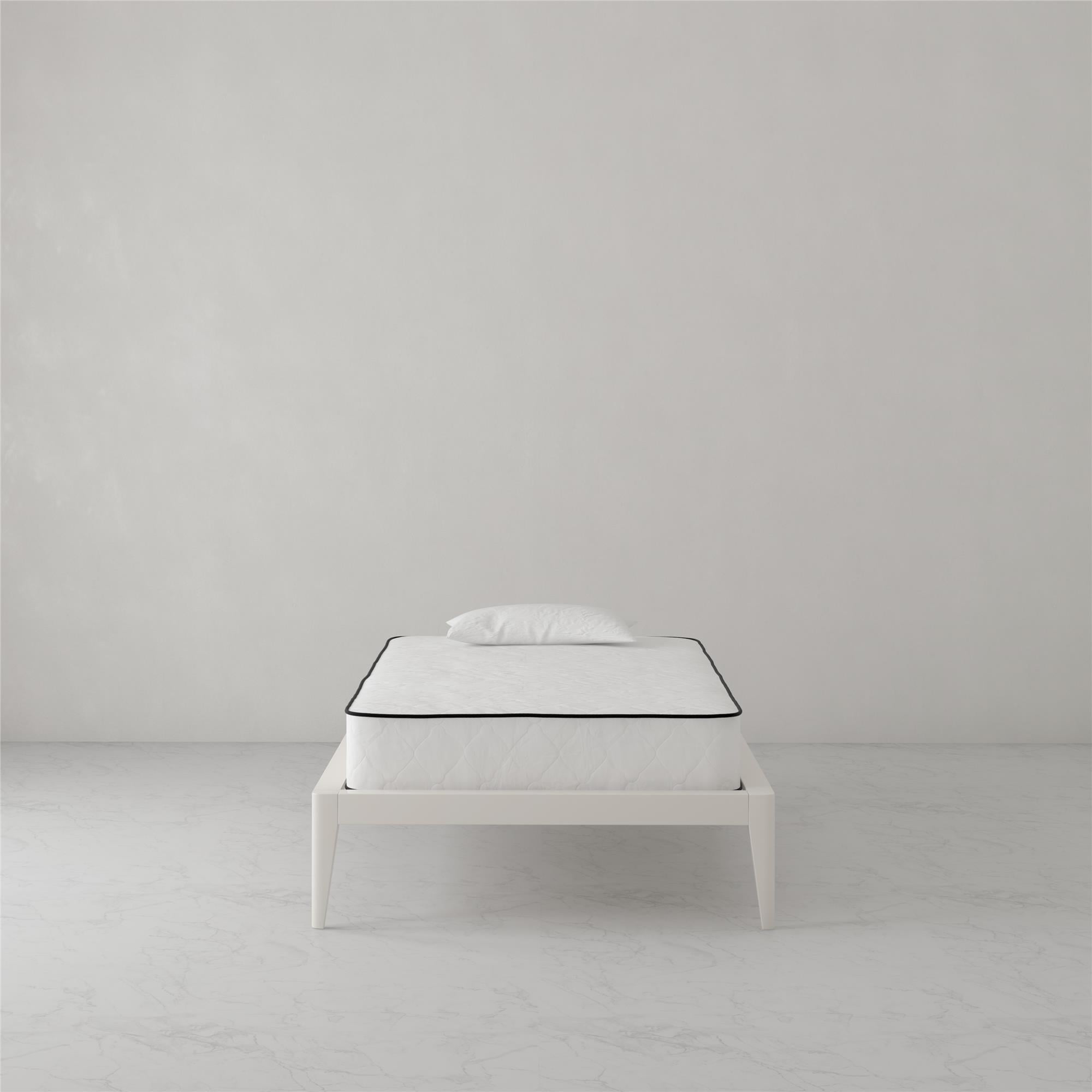 REVERSIBLE DESIGN: Dual sided construction is identical on both sides and can be flipped to extend the life of the mattress. Simply periodically rotate the mattress to promote mattress longevity and extended support. POCKET SPRING STRUCTURE: 7 inches of superior 465 heavy-duty steel independently encased pocket springs provide equal weight distribution by isolating partners movements for a more restful night’s sleep. Responsive coils provide dynamic pressure point relief by offering any body shape balanced support, no matter the sleeping style. MEDIUM-FIRM FIRMNESS LEVEL: Wrapped in a ”cushion-like” quilted polyester cover, the mattresses’ dual layers of high-density thermobonded polyester pads offer long-lasting support and durability. Mattress provides a cooler sleep than traditional foam mattresses because polyester pads do not retain heat and allow airflow. NON-TOXIC & ECO-FRIENDLY CONSTRUCTION: Pads are made from 50% recycled polyester fibers and mattress contains no added fire retardant chemicals. GreenGuard Gold Certified to meet strict indoor air quality standards. ASSEMBLED IN CANADA: Mattress conveniently ships to your door compressed and rolled up in a box for easy handling. Product dimensions: 74″L x 38″W x 8″H. Net weight: 47.5 lbs. Carton dimensions: 41″L x 12″W x 12″H. Gross weight: 53 lbs. 10-year limited warranty. Zippered cover is not removable or machine washable but can be spot cleaned with a damp cloth