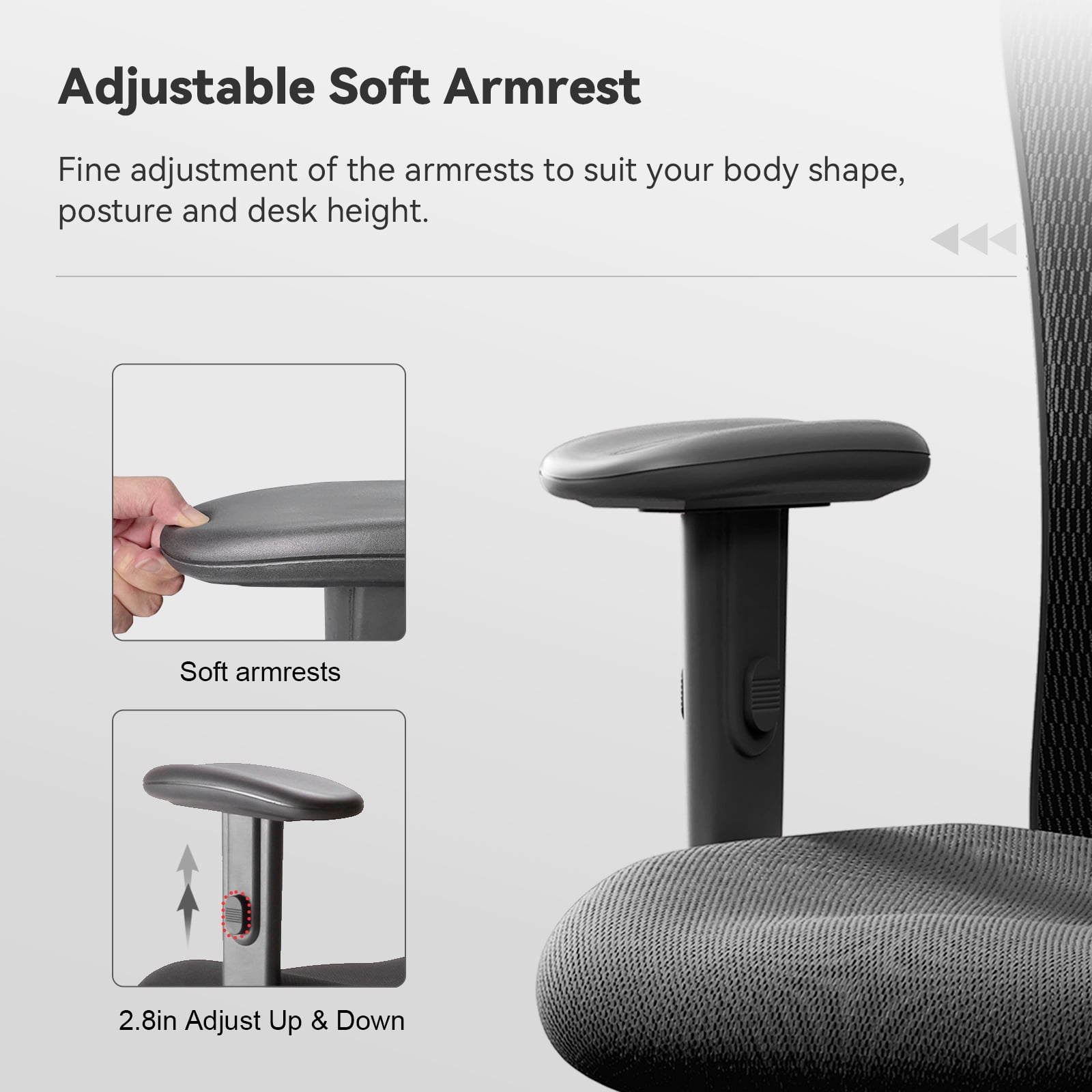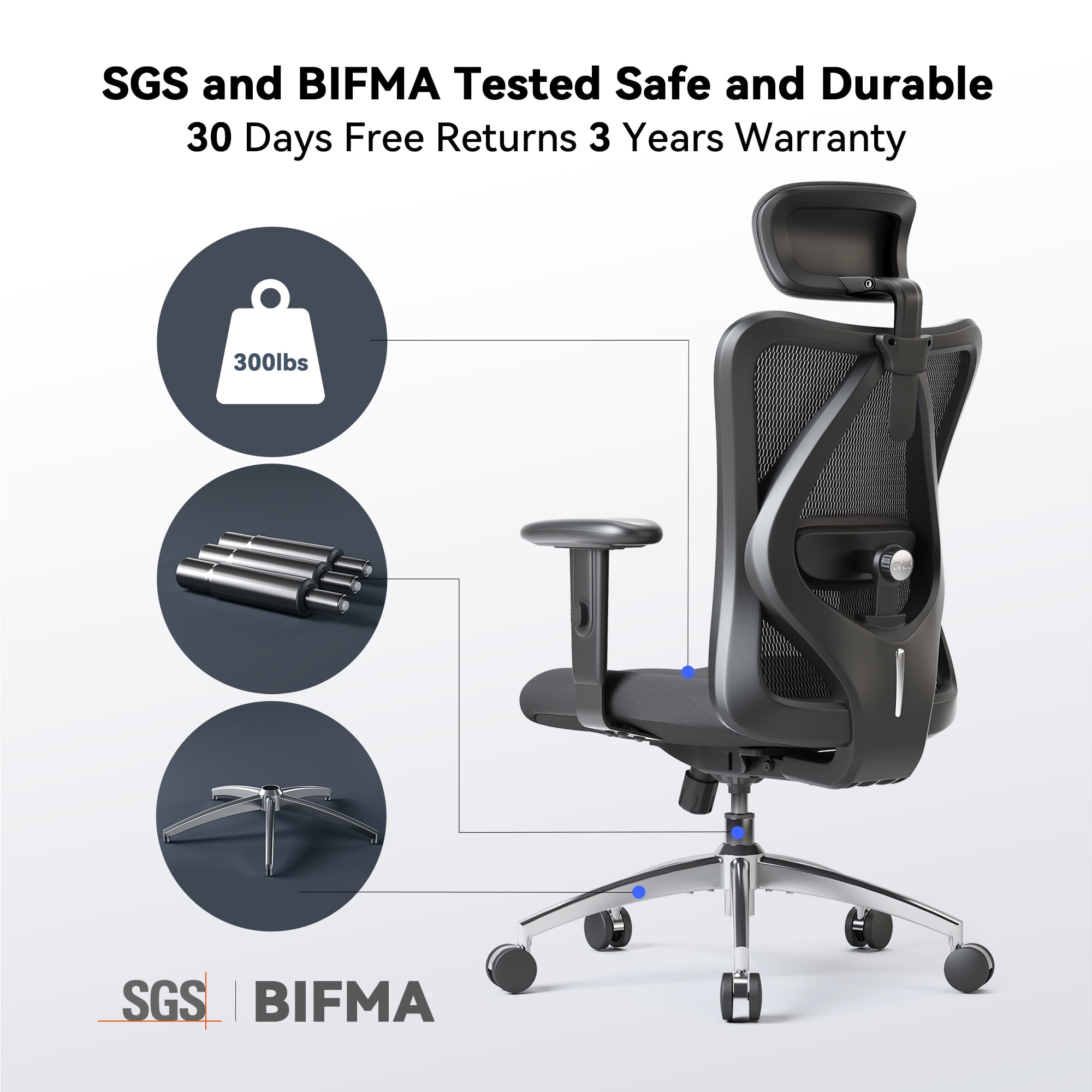 【Comfortable Foam Cushion】Office chair. M18 home office chair cushion has a thickness of 3.15 inches, featuring high elasticity, resistance to deformation, and durability against dirt. Designed in a W shape, the cushion helps alleviate pressure on the thighs and lumbar region to offer a more comfortable sitting experience. The backrest of the M18 Mesh Office Chair is made of breathable, high-strength, stain-resistant mesh. It helps to maintain air circulation and keep you cool when sitting for long periods of time. 【Ergonomic S-Curve Design】SIHOO office chair. Support for the cervical spine, Fits the curve of the back, Protects the lumbar spine. Bidirectional adjustable lumbar support. Reduce strain and stress on your muscles, tendons, and overall skeletal system. Adjustable Headrest, Provide a great neck support. 45° Rotation Angle, Up and Down 3.9″. 【Adjustable Soft Armrest】SIHOO ergonomic office chair. Fine adjustment of the armrests to suit your body shape, posture and desk height. Soft armrests, 2.8in Adjust Up & Down. Lockable Backrest with 36° Tilt Adjustment. 【High Quality】Mesh computer ergonomic chair. This office chair has passed the US BIFMA and SGS test and meets the furniture industry standards. Therefore, you can use it with confidence. 【Easy for installation】The office chair is packaged with instructions, labeled parts, additional screws and rubber gloves and can be installed in half an hour. 【Warranty】Product warranty period is three years. If there is any quality problem, please contact us. After confirming, we will change the accessory for you. We promise to provide you with zero profit product accessories within three years of the warranty period.