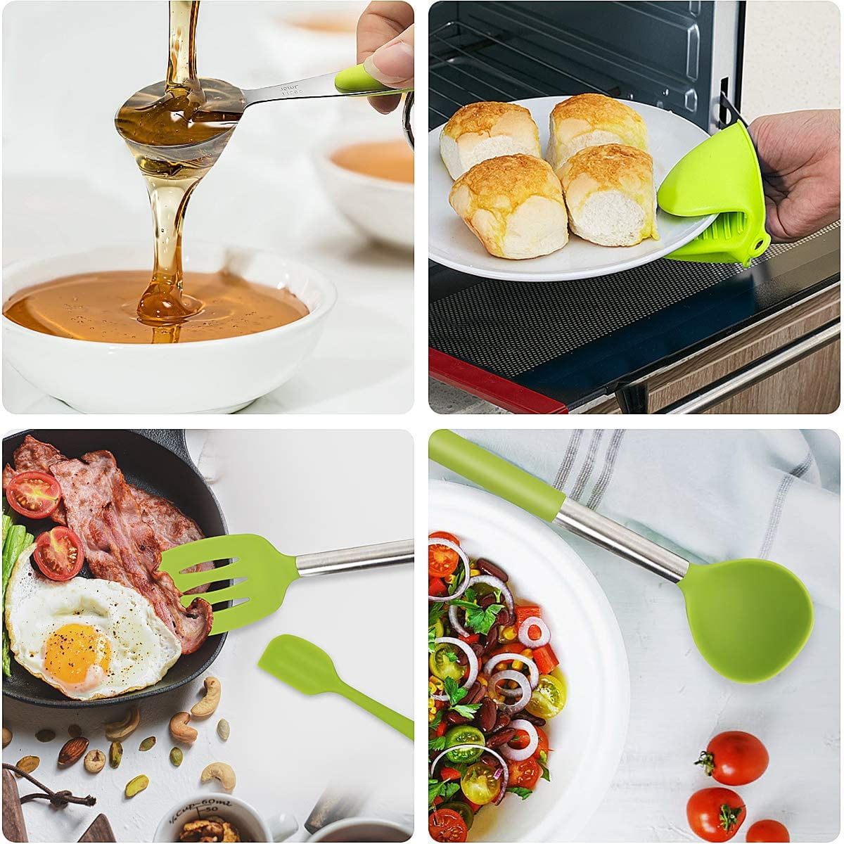 Silicone Cooking Utensil Set, 33+1 Pcs Silicone Cooking Kitchen Tools with Tongs,Spatula,Spoons,Turner,Kitchen Cookware BBQ Tools with Silicone Handle
