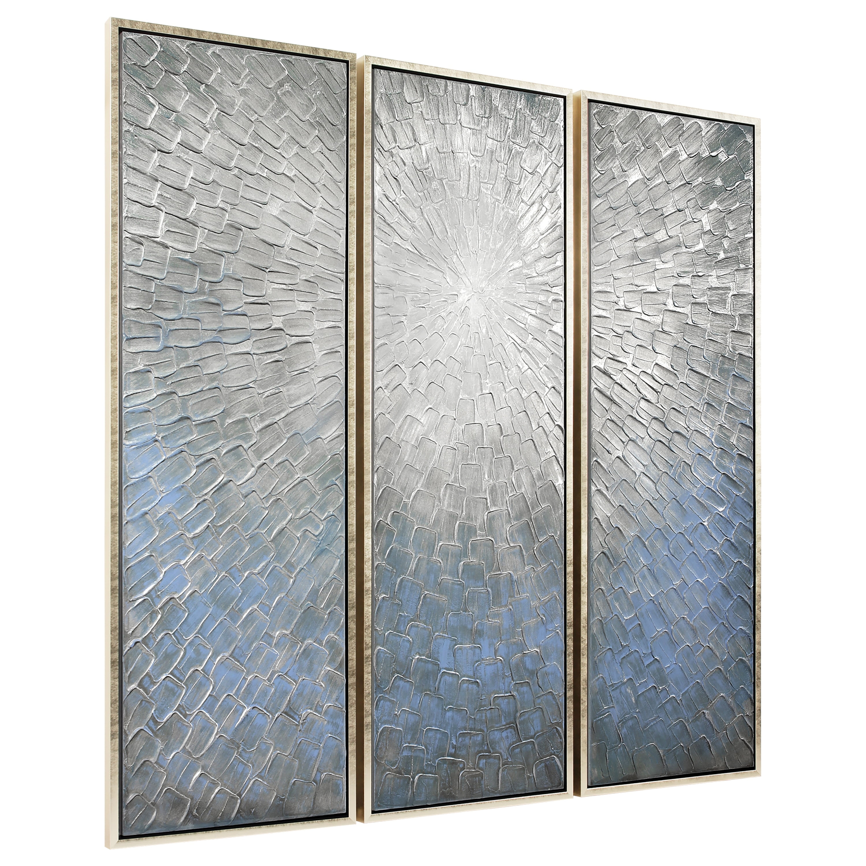 Silver Ice Textured Metallic Hand Painted Canvas Wall Art by Martin Edwards,60″ x 20″ each
