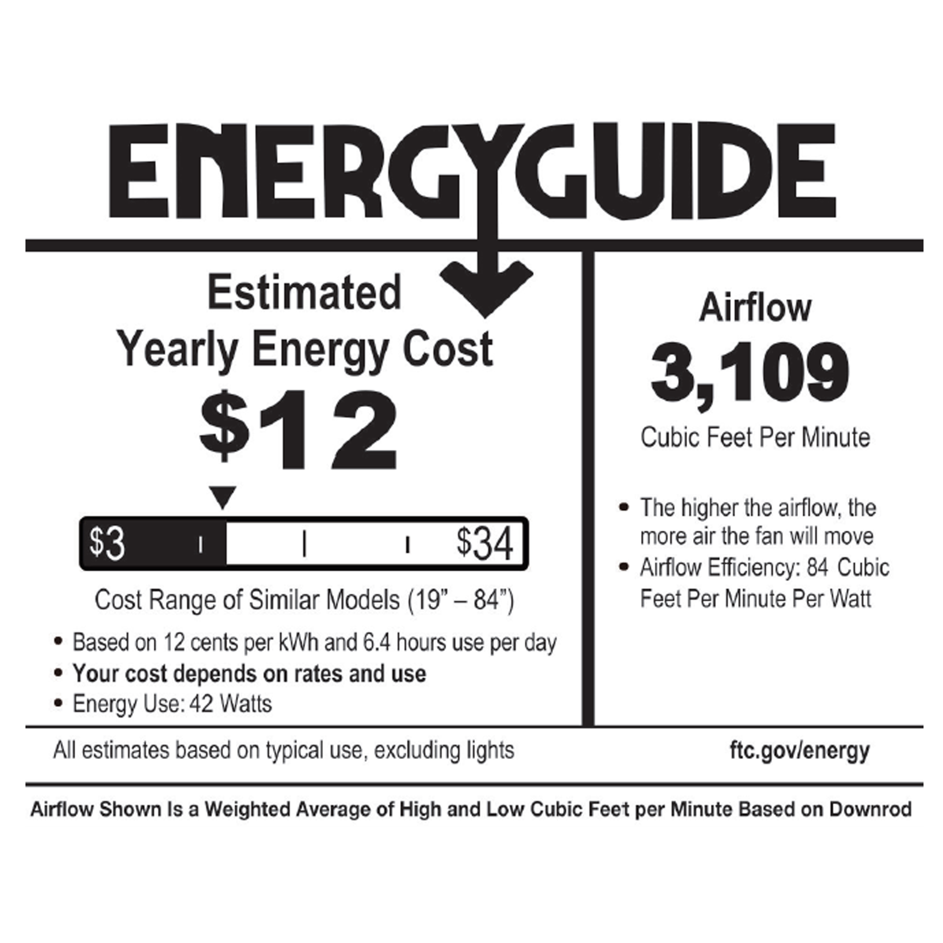 Three-speed motor with reversible fan direction Set flush mount or 2 optional down rods are included: 4 in. or 21 in. down rods Reversible Blade color: Mahogany or Antiqued Black Requires two dimmable E12 LED 6W bulbs and four dimmable E12 LED 1W bulbs (included) Hardwired, recommend to be installed by a qualified electrician At High Speed Airflow up to 6169 CFM, Electricity Use 62 Watts, Airflow Efficiency 183 CF Per Minute Per Watt