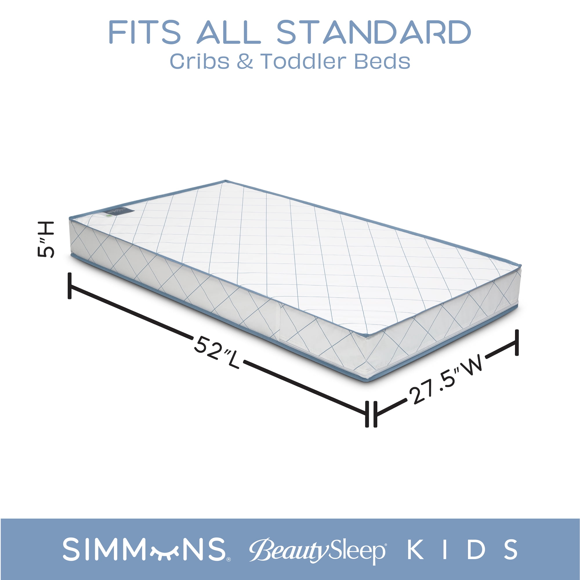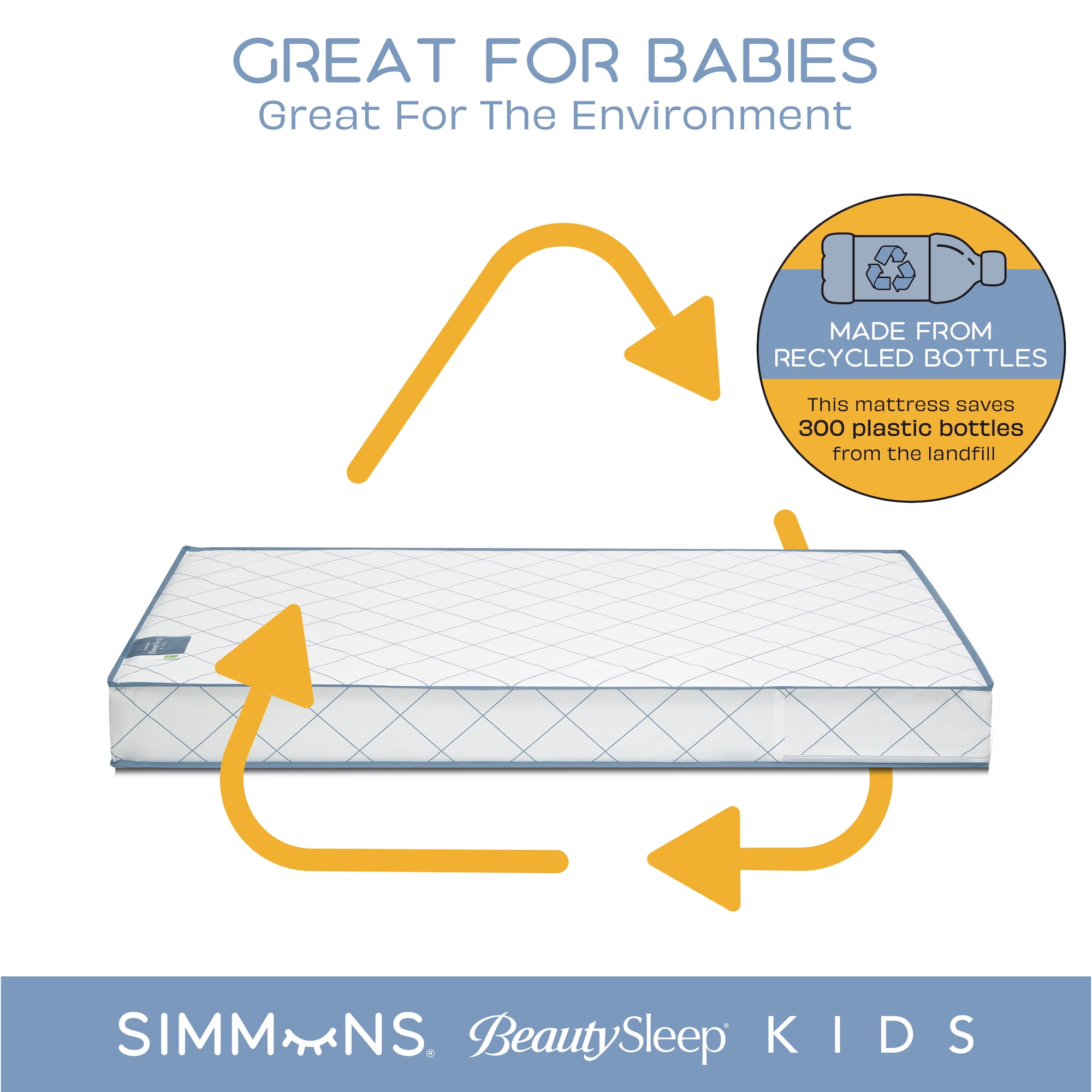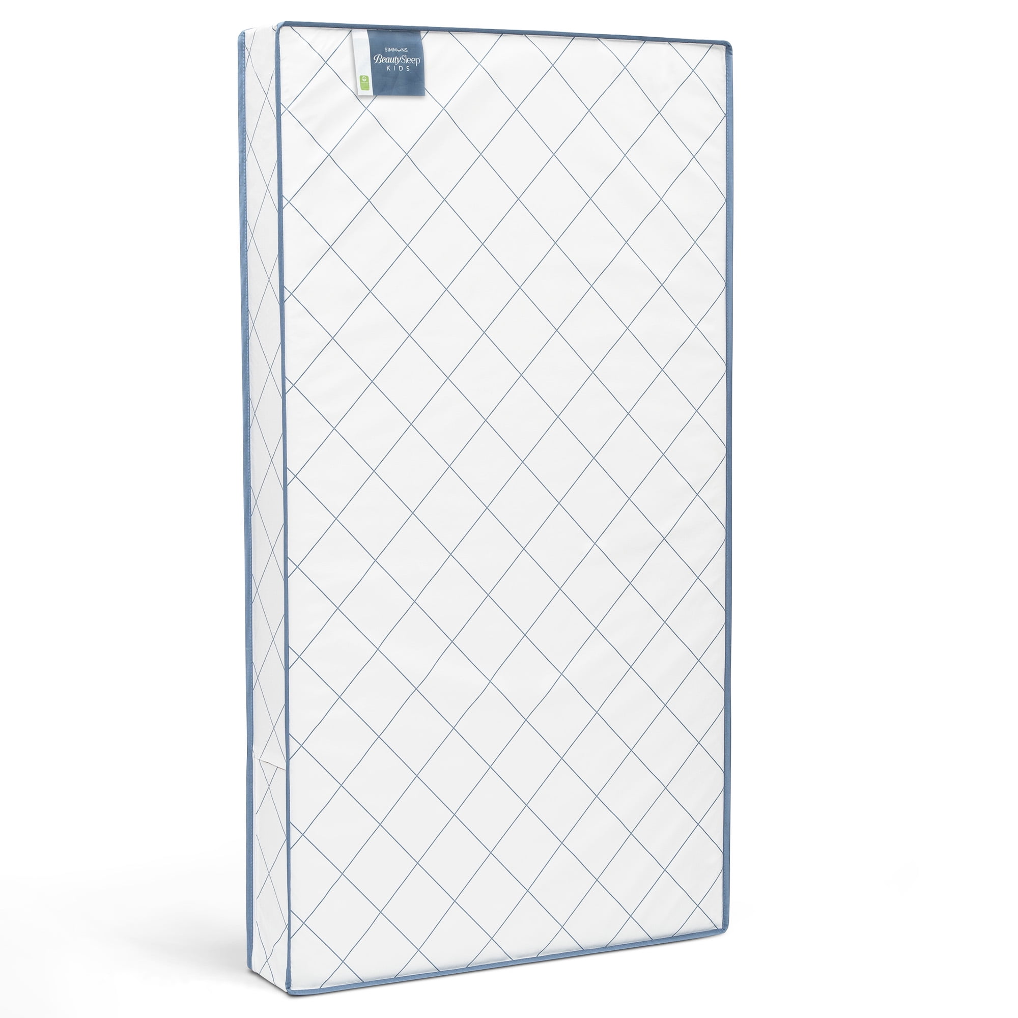 Simmons BeautySleep Kids Radiant Diamond Crib and Toddler Mattress, Waterproof, Extra Firm, GREENGUARD Gold, Sustainably Sourced Fiber Core, White/Blue