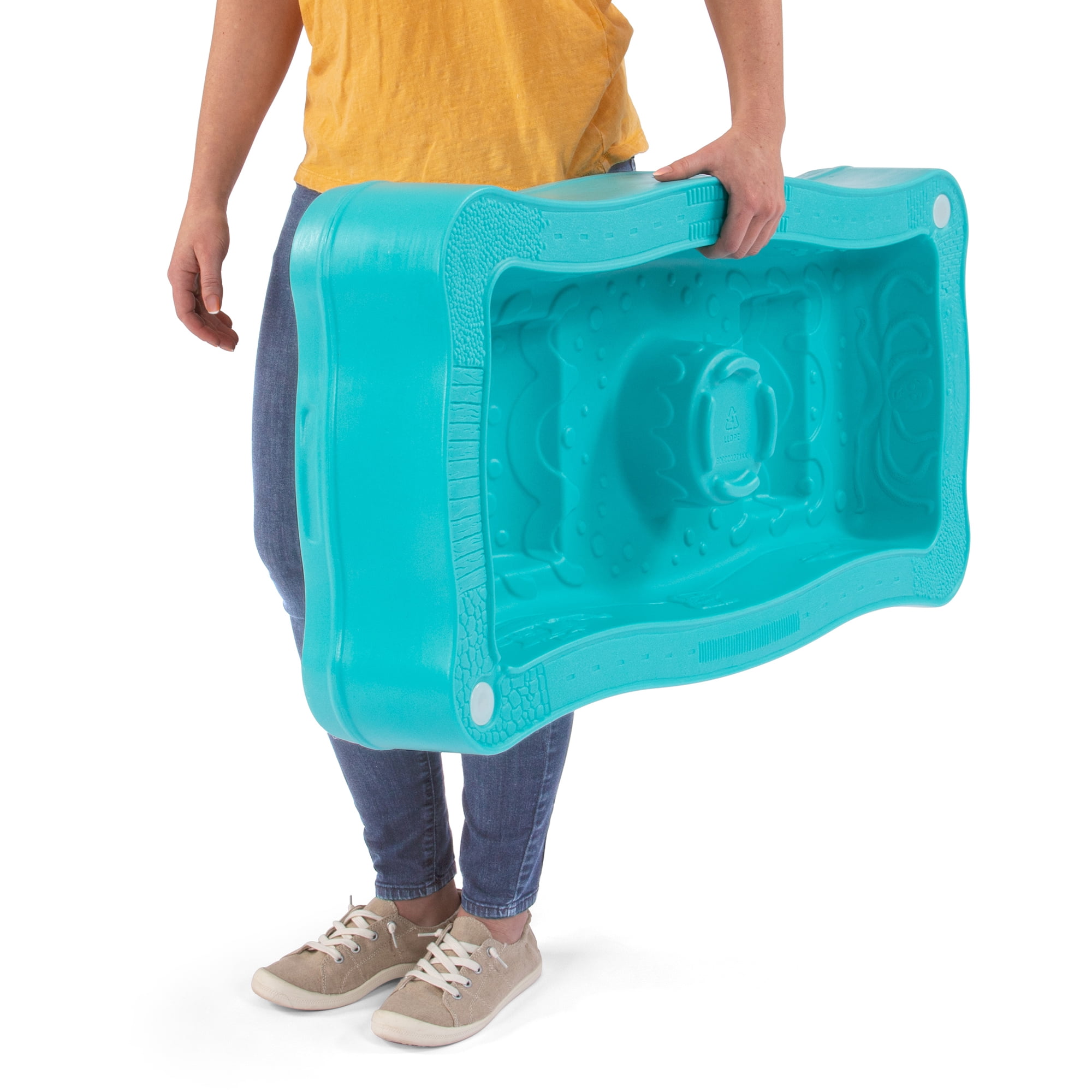 Take the Simplay3 Carry and Go Ocean Drive Water Play Table anywhere your child’s adventures go! This portable, two-sided, ocean themed water table for boys and girls includes fun, molded-in ocean details like an octopus, sailing ship, crawling crab, dolphin, shark and ocean waves. Water toy accessories include submersible dump truck, deep sea boat, water bucket and spinning water wheel. Just add water and the sea adventures can begin! Kids can take sensory sea excursions that fuel imaginations and encourage STEM learning. With two different sides to choose from, the play opportunities keep children and toddlers engaged for hours! This sensory table is easy to clean and store when the water play fun is done, and is built to last for years.