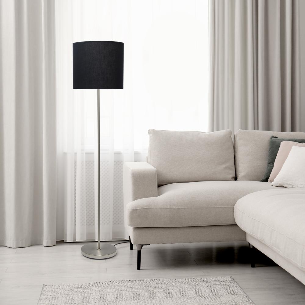 Simply designed to make this floor lamp ideal in your living room, bedroom, foyer, or study! Keep this light at the forefront to display, or tucked away on the side saving space. With a brushed nickel finish and black fabric shade, it will be the right piece to add to your space!