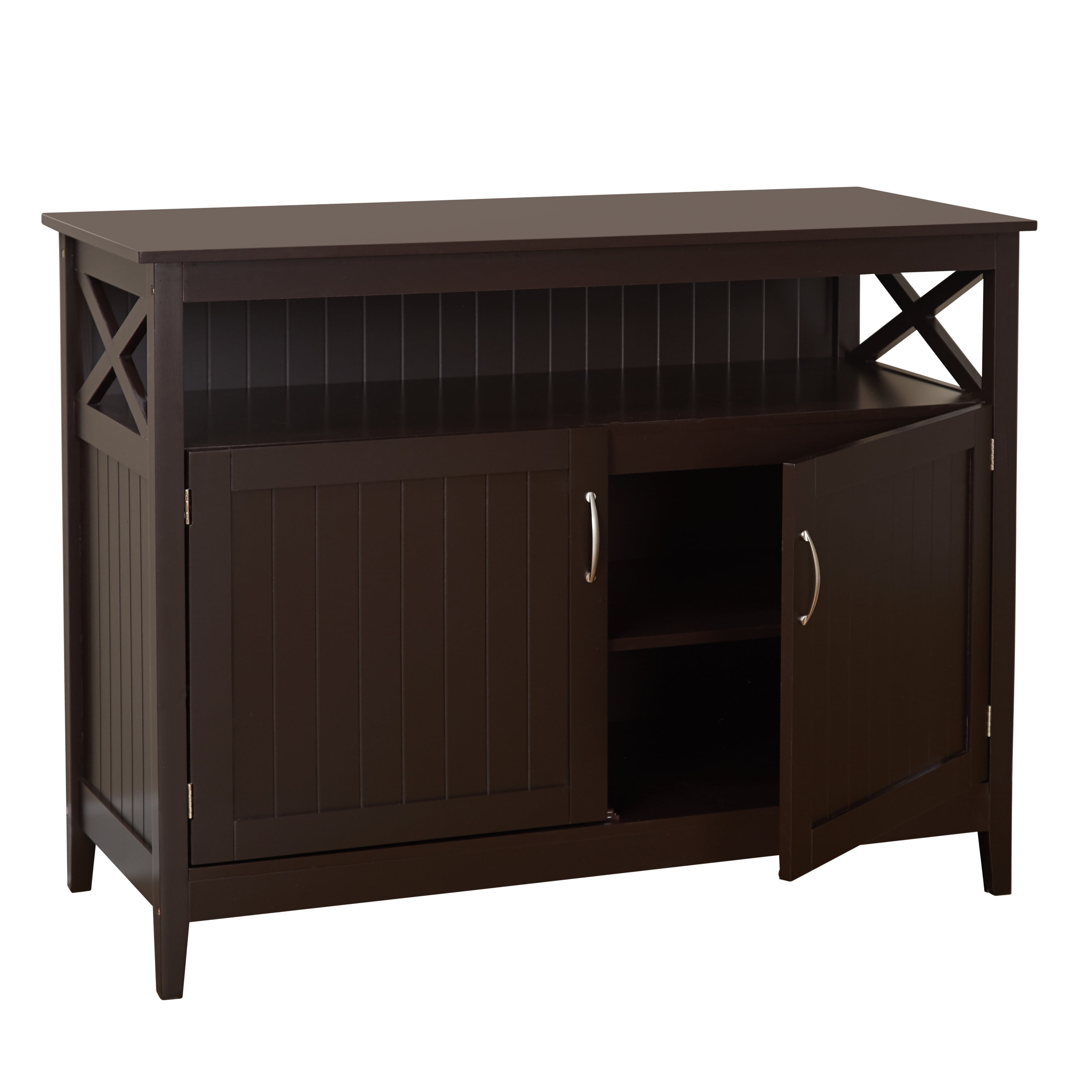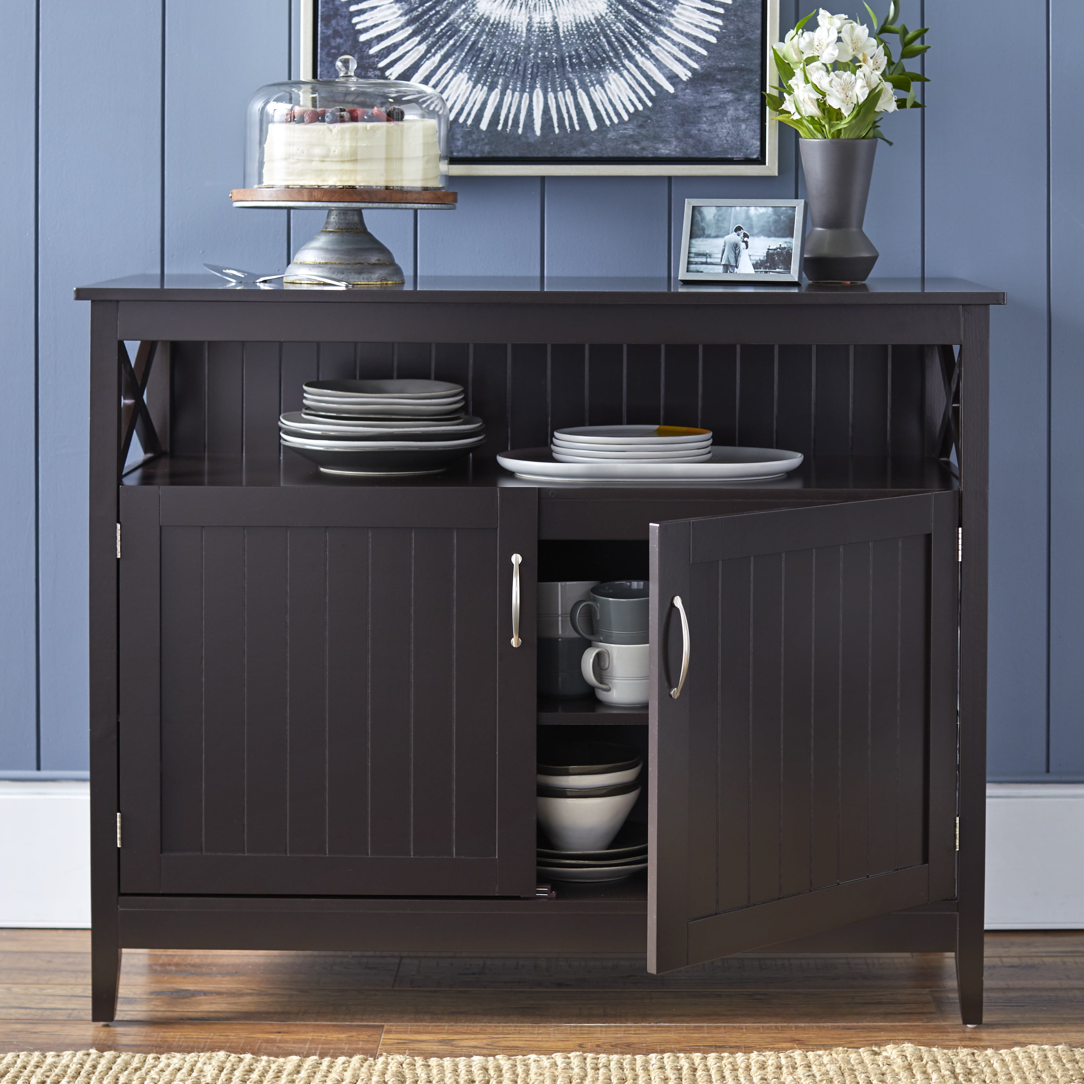 Both stylish and practical, this contemporary buffet by SimpleLiving makes entertaining easier. Keep your most frequently useditems on the open shelf for quick access. This roomy buffet cabinetcomes with adjustable shelves, making it easy to accommodateoversized pieces. The warm espresso finish goes with many colorschemes and decors. Color: Espresso, Black Materials: MDF, solid wood legs Finish: Espresso, Black Hardware finish: Metal Two (2) door storage cabinet with an adjustable shelf Features beadboard doors and side panels Overall dimensions: 36 inches high x 45 inches wide x 20 inches deep Buffett top dimensions: 45 inches wide x 20 inches deep Open shelf dimensions: 6.75 inches high x 40.75 inches wide x 17.25 inches deep Inside the cabinet overall dimensions: 17.5 inches high x 40.75 inches wide x 17.25 inches deep Assembly time is approximately 1 hour Assembly required Please note: This item does not ship to Hawaii orAlaska.