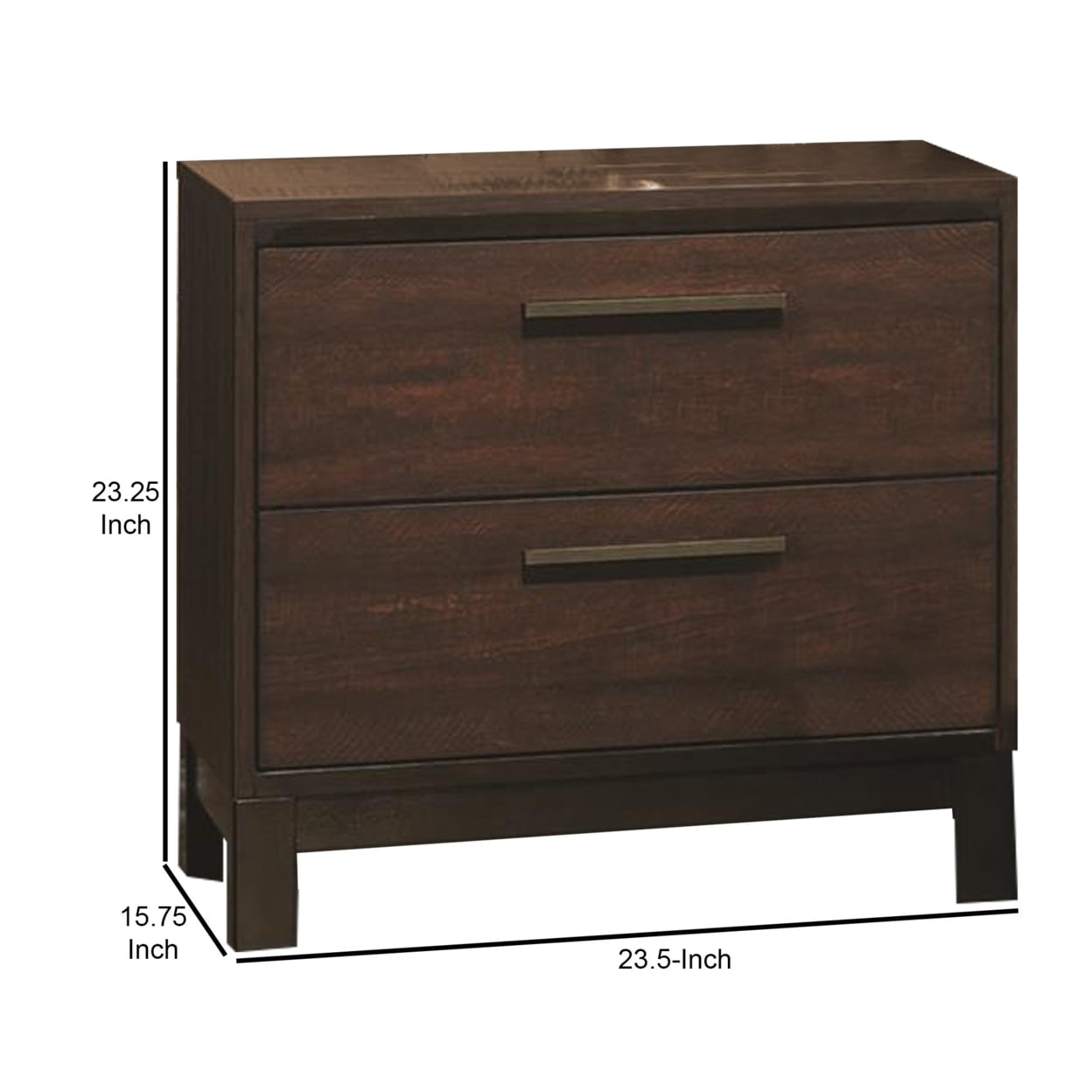 SIMPLE RELAX Edmonton 2 Drawer Nightstand, Rustic Tobacco, Dark Bronze • Features two spacious drawers for ample storage • Rustic tobacco finish adds warmth and character • Dark bronze hardware complements the overall design • Sturdy construction ensures durability and longevity • Ideal for bedrooms, providing a stylish bedside solution