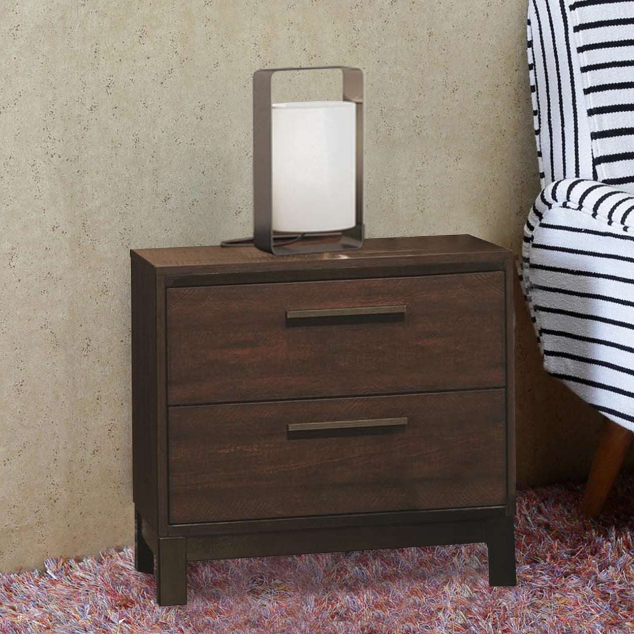 SIMPLE RELAX Edmonton 2 Drawer Nightstand, Rustic Tobacco, Dark Bronze
