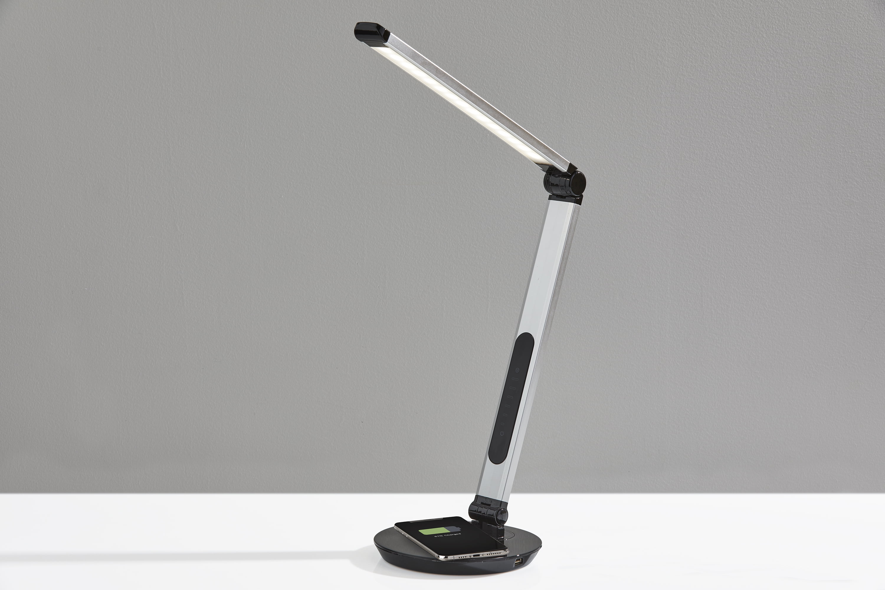 An upgrade from the standard desk lamp, the Rodney LED Wireless Charging Mult-Function Desk Lamp takes desk lamps to the next level with extra functionality and a sleek silver finish. With 6 watts of adjustable, flicker free LED lighting, you can feel free to work, study or read without straining your eyes.Full control over the 5 different color temperature modes and 5 different brightness levels offers an infinite range of lighting selections. This lamp also adjusts in 2 different locations providing a wide range of reach on your desk. In addition, a Qi certified wireless charging pad is conveniently located inside of the base. Many smartphones (list below) have Qi technology built in, so just place your phone on the pad and it will charge right up. No cords, no mess. It’s that easy! All AdessoCharge product is Qi certified by the Wireless Power Consortium. Please visit to see a list of Qi certified products. Our product has been tested and verified to be safe and in compliance with the Qi standard. The AdessoCharge pad supports 5W charging on contact with the charging pad, which gets your phone from 0% to 100% in just 3-4 hours, depending on your phone model. A USB is located on the base and can charge up a second device simultaneously. The LED’s are integrated into this lamp and are not replaceable. However, Adesso LED’s are top quality and last around 50,000 hours!