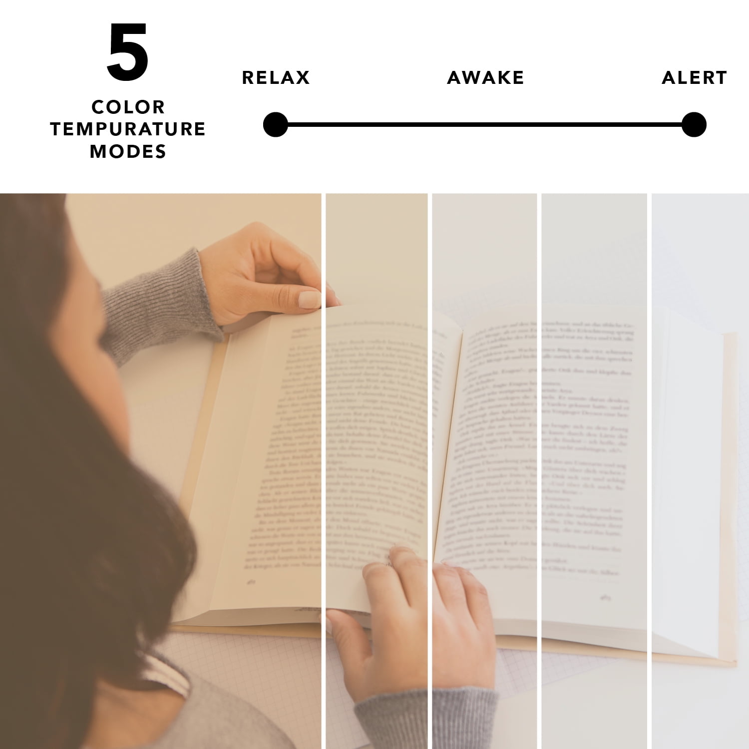 Easy on the eyes: 6 Watts of flicker free, glare free LED lighting, perfect for working or reading Qi Wireless Charging Pad & USB Port: connect and recharge your smartphone or tablet 5 Color Temperature Modes & 5 Brightness levels: Adjust the light to match your activity and the time of day Convenient Adjustability: Adjust at the base or mid-point to direct light where it is needed