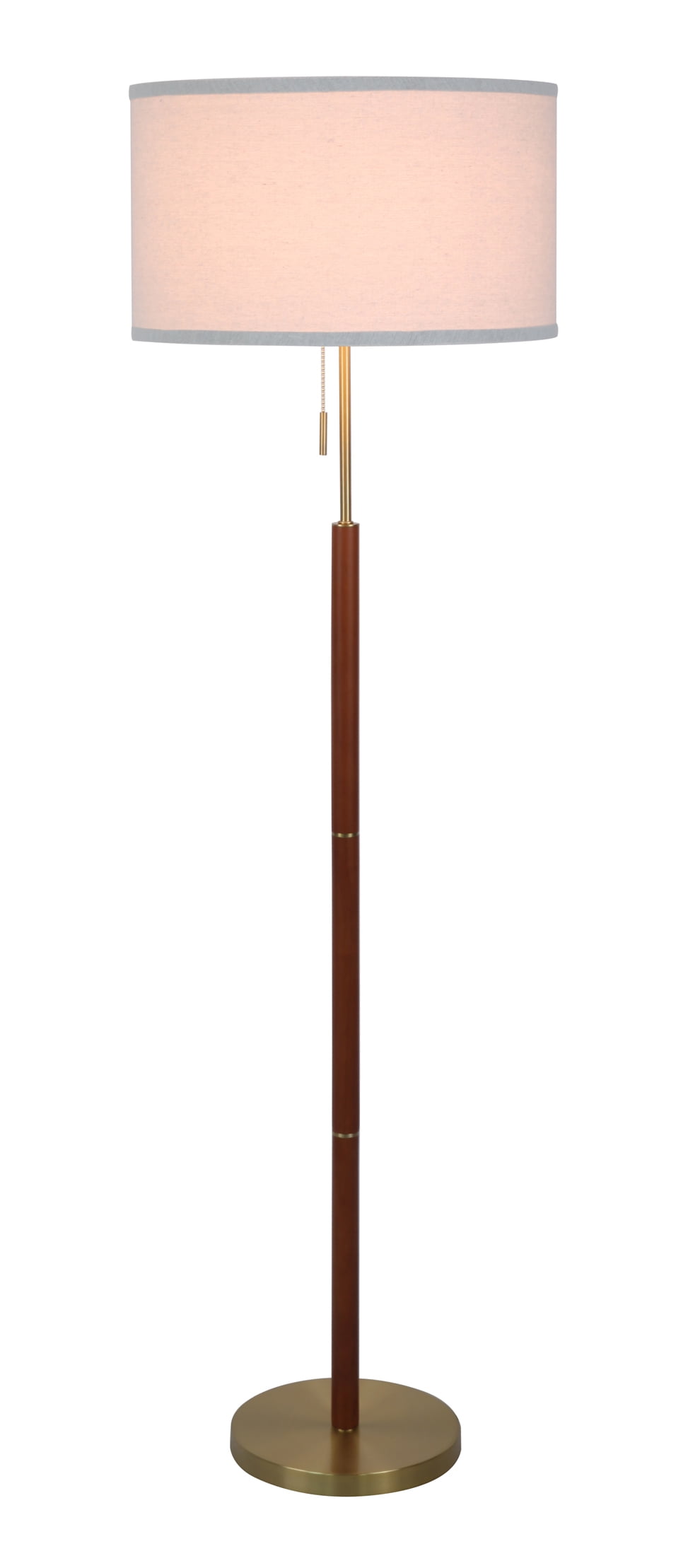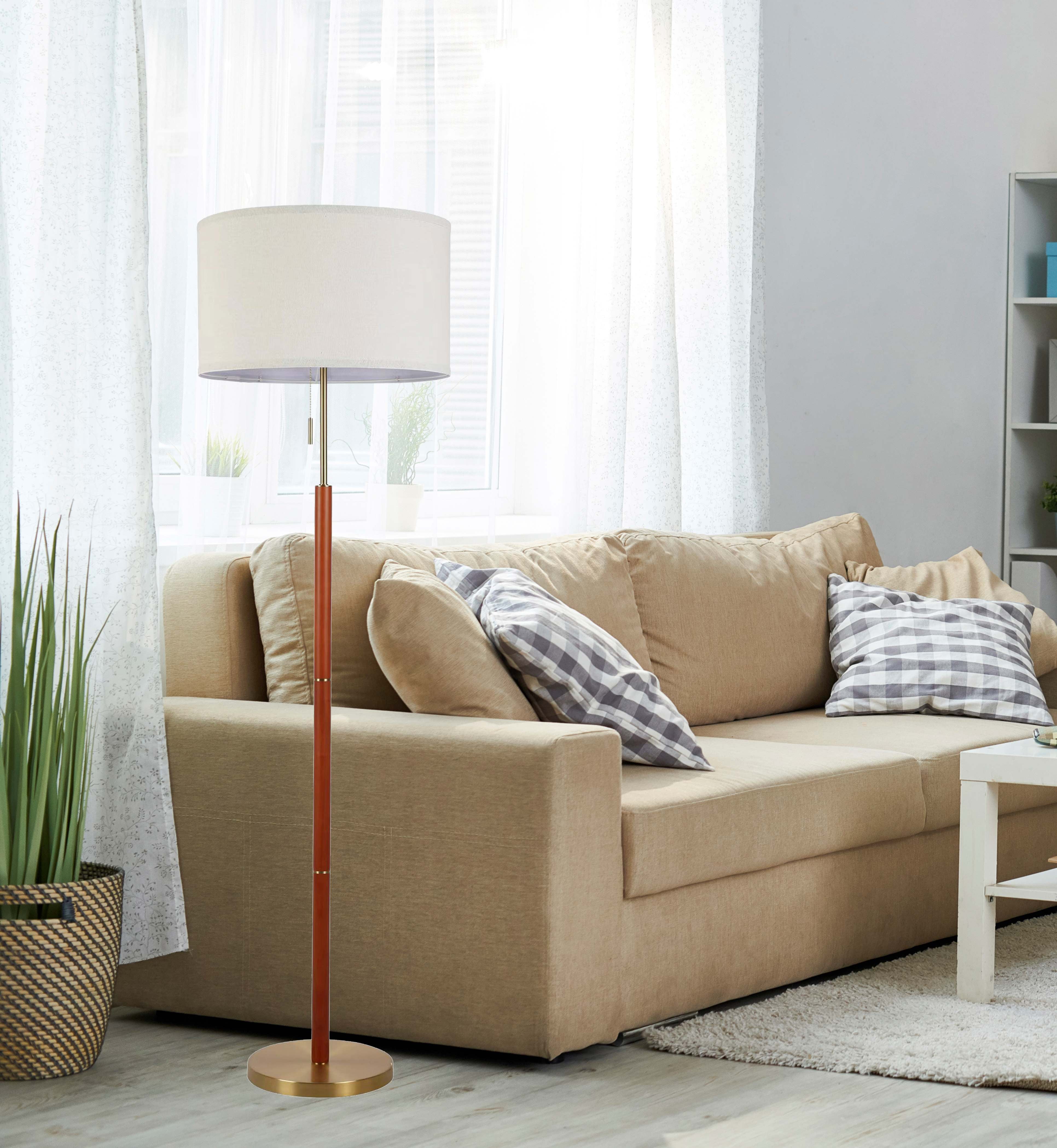 Simplee Adesso Wood and Brass 58″H Walnut Finish Floor Lamp with Pull Chain, Transitional, Adult Use