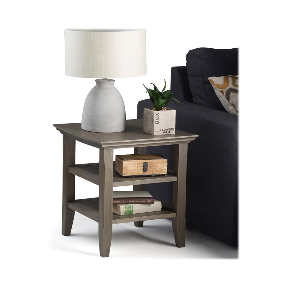- Product Name: Acadian SOLID WOOD 19 inch Wide Square Transitional End Table in Farmhouse Grey