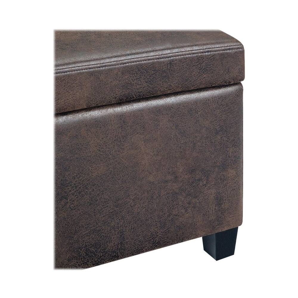 Clutter and mess everywhere. What you need is a tasteful, well made storage solution. The Avalon Large Storage bench is made from durable faux leather and is the answer to all your needs. This attractive ottoman is extra strong and durable and features a beautiful stitched exterior and large storage interior.