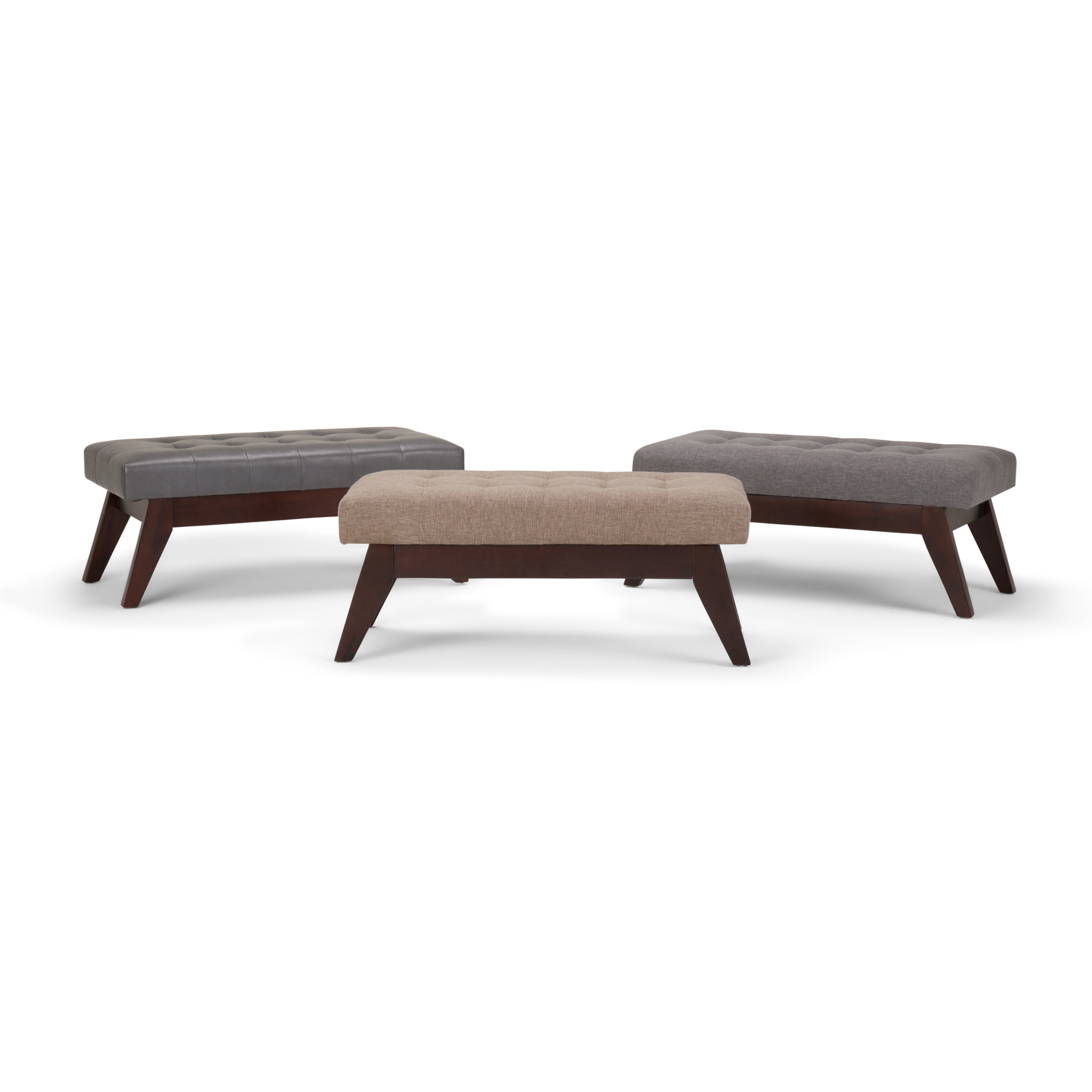 Update your space with the Draper Mid Century Tufted Ottoman Bench. Its modern style will add a fresh on trend look to any space in your home. Made with solid wood and a variety of durable stylish fabrics . Whether used in the entryway, living room or bedroom, it will be the showpiece that completes the room.