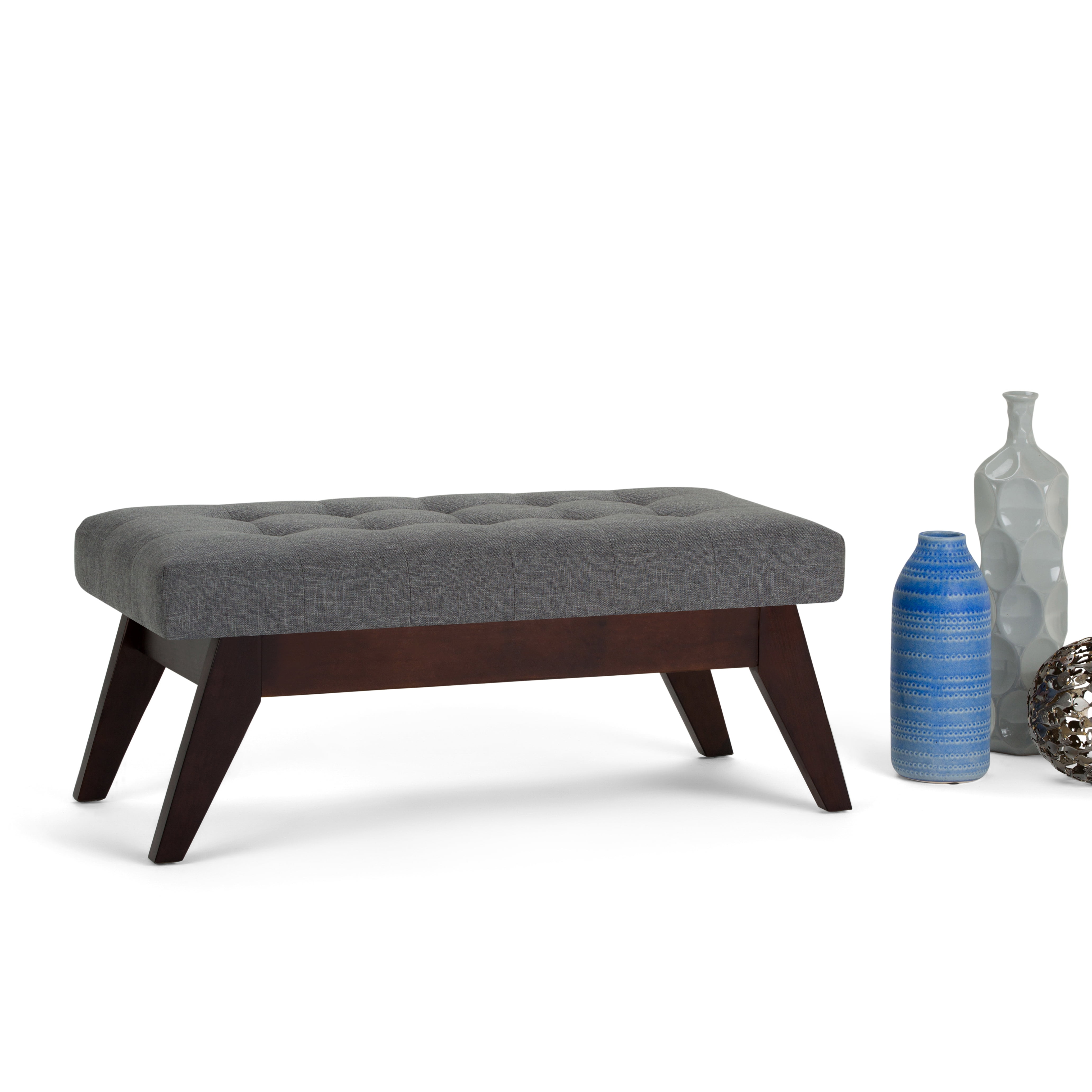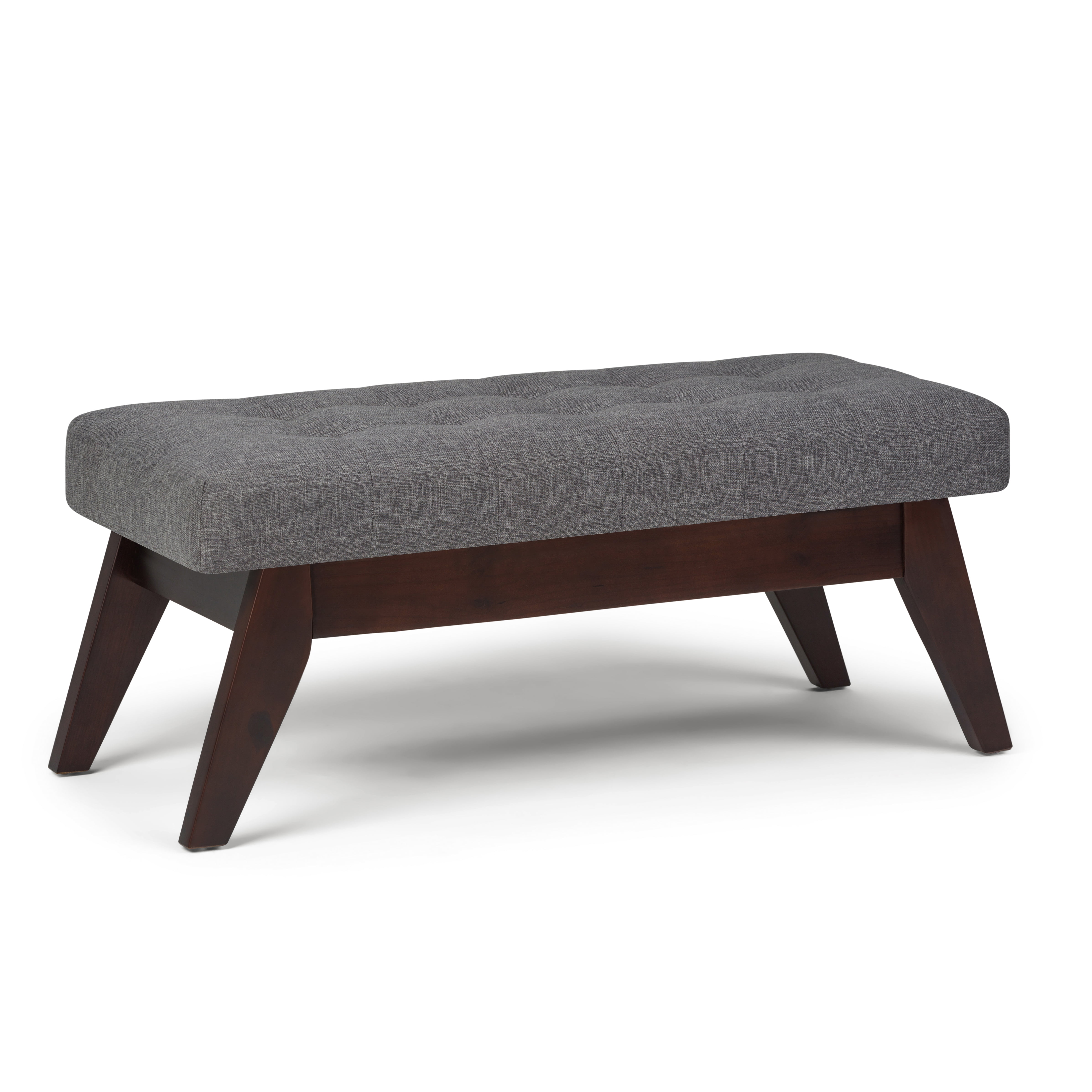 Simpli Home Draper 40 inch Wide Mid Century Modern Rectangle Tufted Ottoman Bench in Slate Grey Linen Look Fabric