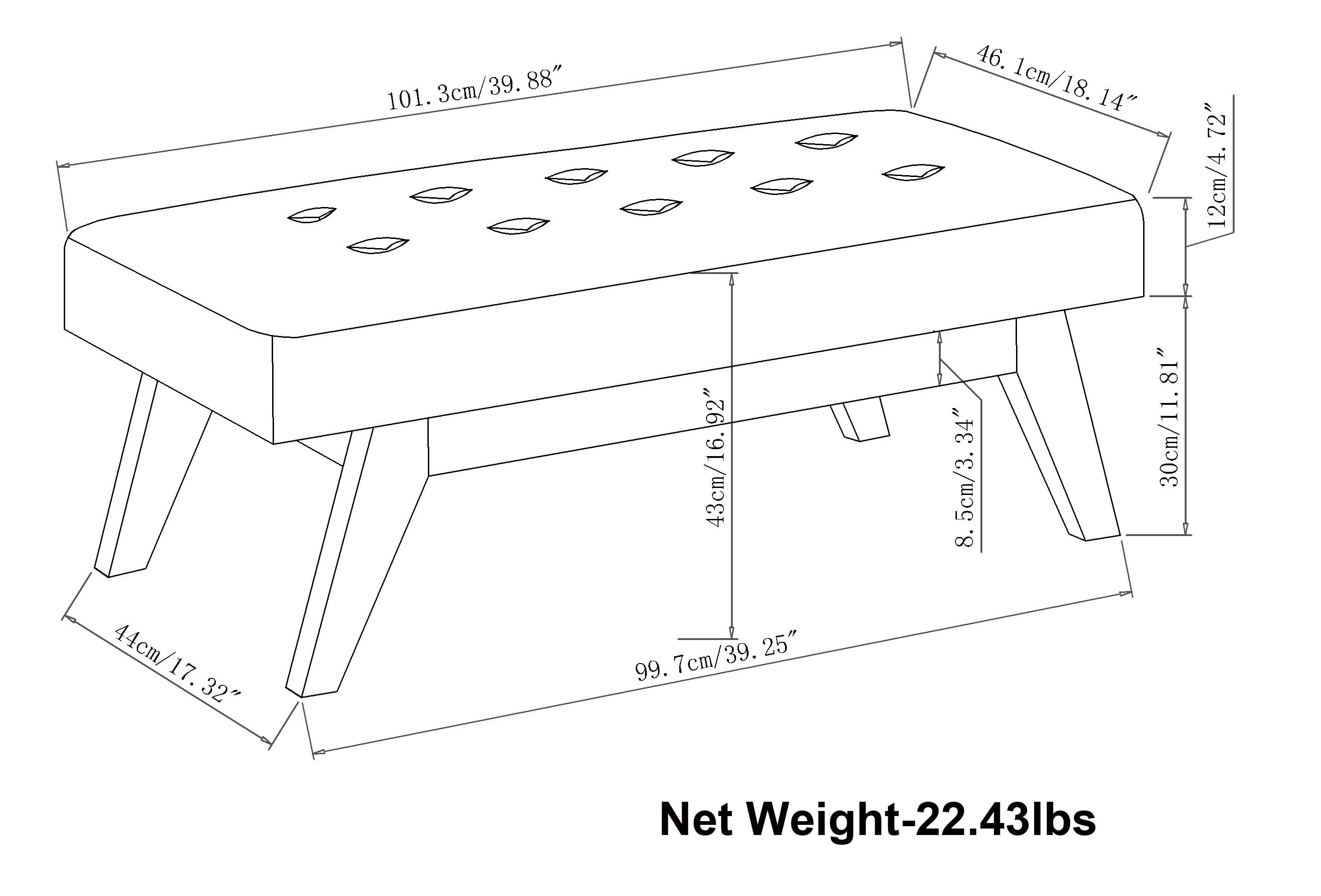 DIMENSIONS: 39.9″W x 18.1″D x 16.9″H Hand constructed using solid wood, plywood, foam Upholstered with Slate Grey Linen Look Fabric Features tufted detail and solid wood ottoman base and legs Multi-functional ottoman can be used in bedroom, living room, family room, hallway as an entryway bench or provide additional sitting Mid Century Design The main body of the ottoman is fully assembled. Simply attach the legs to the base and you’ll be enjoying your ottoman in just a few minutes! Efforts are made to reproduce accurate colors, variations in color may occur due to computer monitor and photography We believe in creating excellent, high quality products made from the finest materials at an affordable price. Every one of our products come with a 1-year warranty and easy returns if you are not satisfied.