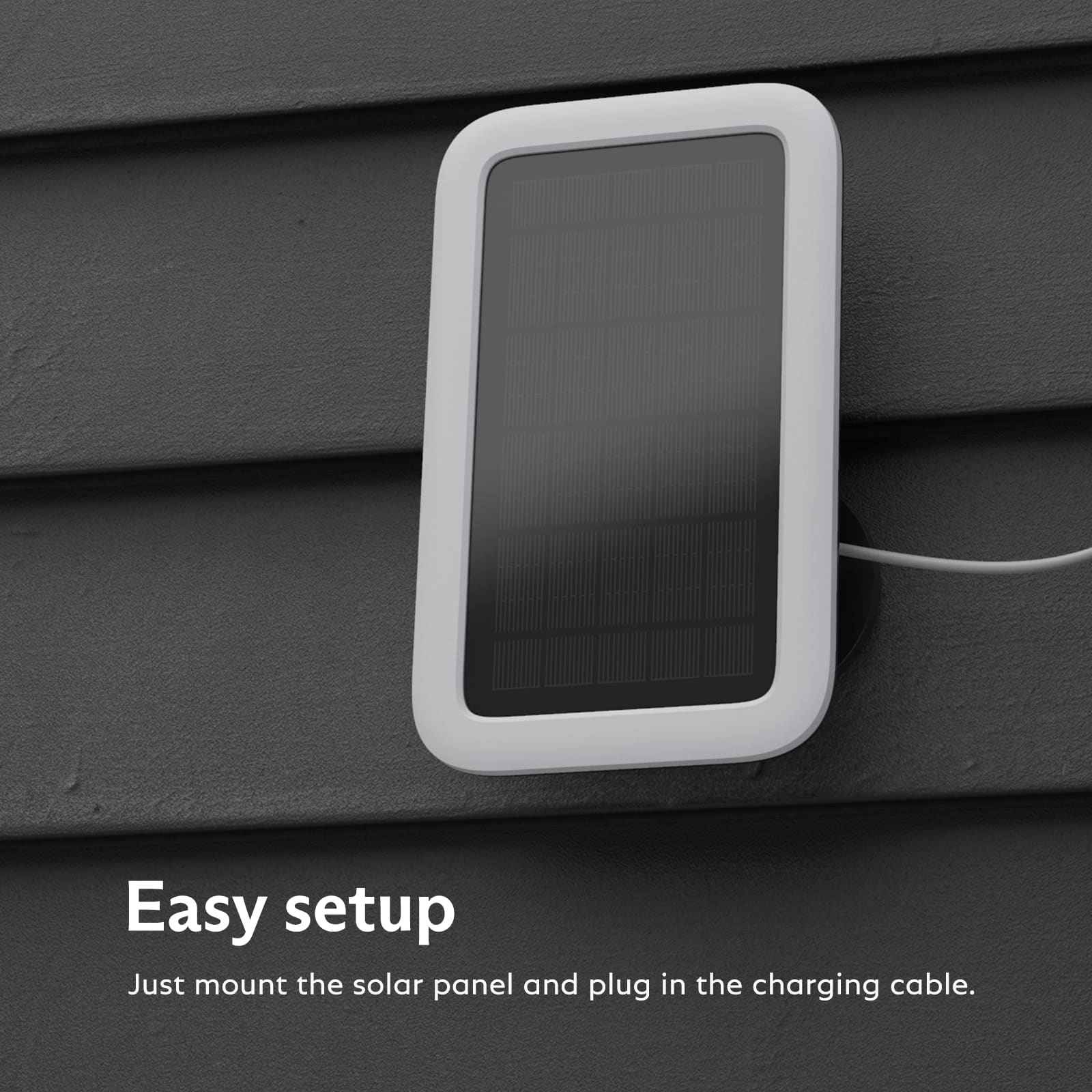 The SimpliSafe Solar Panel keeps your Wirless Outdoor Camera charged at all times with just 3 hours of direct sunlight per day. This solar panel offers a 360 degree adjustable mount that allows for maxium sunlight exposure. Set up is easy, just mount the solar panel and plug in the charging cable. Weather resistant, works in 32ºF to 120ºF and Compatible with your SimpliSafe Outdoor Wireless Camera