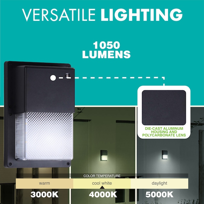 - LED mini wall pack uses just 15 watts of energy and gives off 1050 lumens of brightness making it an ideal outdoor lighting solution for office buildings, apartment complexes, hotels, and more