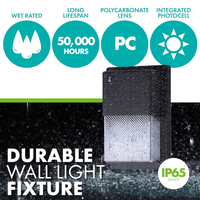 - Integrated photocell automatically turns the light on at dusk and off at dawn