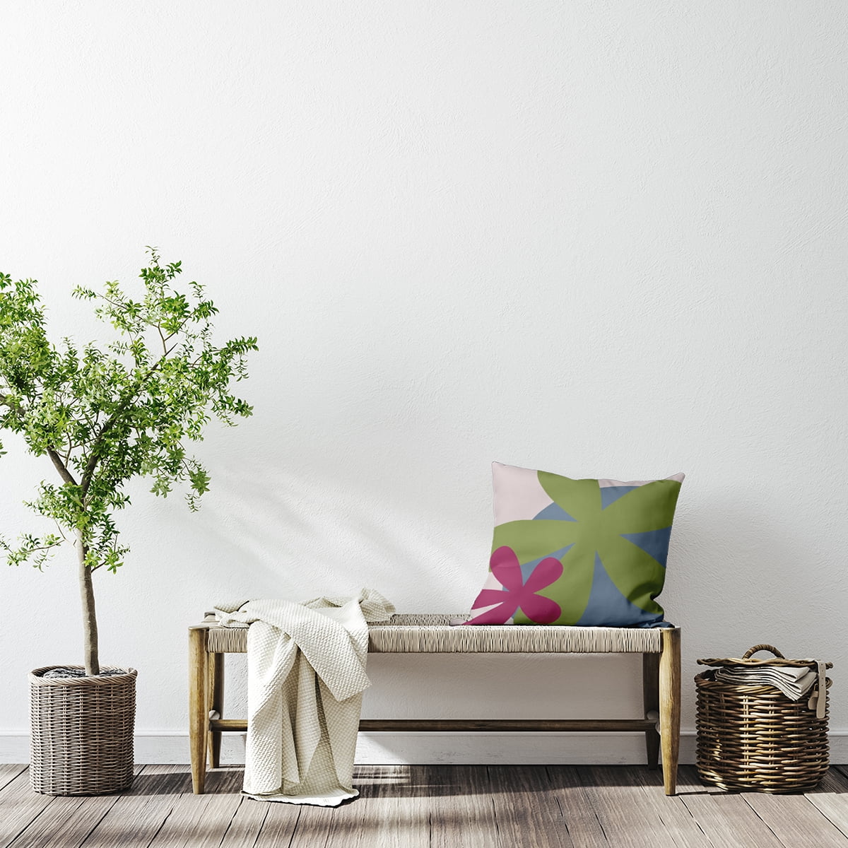 Simply Daisy 16-inch Square Bold Flowers Polyester Indoor Pillow, Apple Green Qty 1