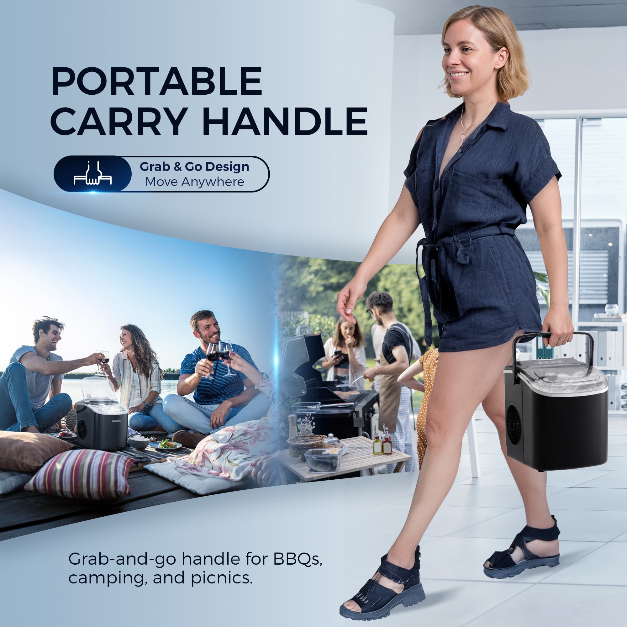 6 Minute Ice Making & Ultra Quiet Operation: Experience lightning fast ice making with our Simzlife Ice Maker. Produce your first batch of fresh bullet-shaped ice in just 6 minutes. Featuring a 1.2L water tank and powerful compressor, this portable ice maker can produce up to 26 pounds of ice per day and store up to 1.3 pounds of ice at a time. What’s more, it operates at less than 45dB below normal noise, creating a comfortable and quiet environment. So whether you’re at home, in the office, or on a camping trip, you can enjoy the quiet process of making ice. Portable Design & Perfect Bullet Ice: Our ice maker is designed for ultimate portability. It comes with a sturdy handle, weighs only 13.89 pounds, and has a compact size of 11.57 (L)*11.42 (W)*8.74 (H) inches. This makes it easy to carry and suitable for a variety of occasions, including kitchen, home, camping trips, RV adventures, parties and dorms. The newly designed countertop ice maker produces the popular bullet-shaped smooth ice cubes. These ice cubes are less likely to stick together, ensuring you can easily use them without any hassle. They are also gentle on your hands and mouth, making them perfect for cold beverages, iced coffee, or even to chew on as a snack. Intelligent Operation & Self-cleaning Function: The ice maker is equipped with advanced infrared sensors and is highly intelligent. When the ice basket is full, the “Ice Full” indicator will flash to remind you to remove the ice to prevent overflow. Similarly, when it is time to refill the ice basket with water, the “Fill” indicator light will start blinking. This compact ice maker is also equipped with a one-touch auto-clean function. Simply press and hold the “On/Off” button for 5 seconds after water is added and the ice maker will automatically run a 30-minute cleaning cycle. This hands-free cleaning process ensures that your ice maker stays clean and sanitary. User-friendly & Easy to Operate: The Simzlife ice maker is a popular and classic model. It has a large transparent window that allows you to monitor the ice-making process inside. Equipped with a 170W upgraded compressor, the energy consumption is 4kWh/24H, which helps you save on electricity bills. The easy-to-operate control panel makes ice making a breeze. Just two simple steps: add water and press the “On/Off” button. Then the ice maker will quickly provide you and your family with fresh bullet ice. Excellent Quality & Warranty Commitment: This ice maker comes with a handle, ice basket, ice scoop and manual, neatly packaged, making it a great choice for gifts. Our mission is to provide customers with high-quality Simzlife ice makers at reasonable prices. We believe you deserve a more refined life. And provide a 12-month warranty and lifetime technical service support from the original date of purchase. If you have any questions about using our ice maker, our 7*24-hour customer support team is always ready to help you.