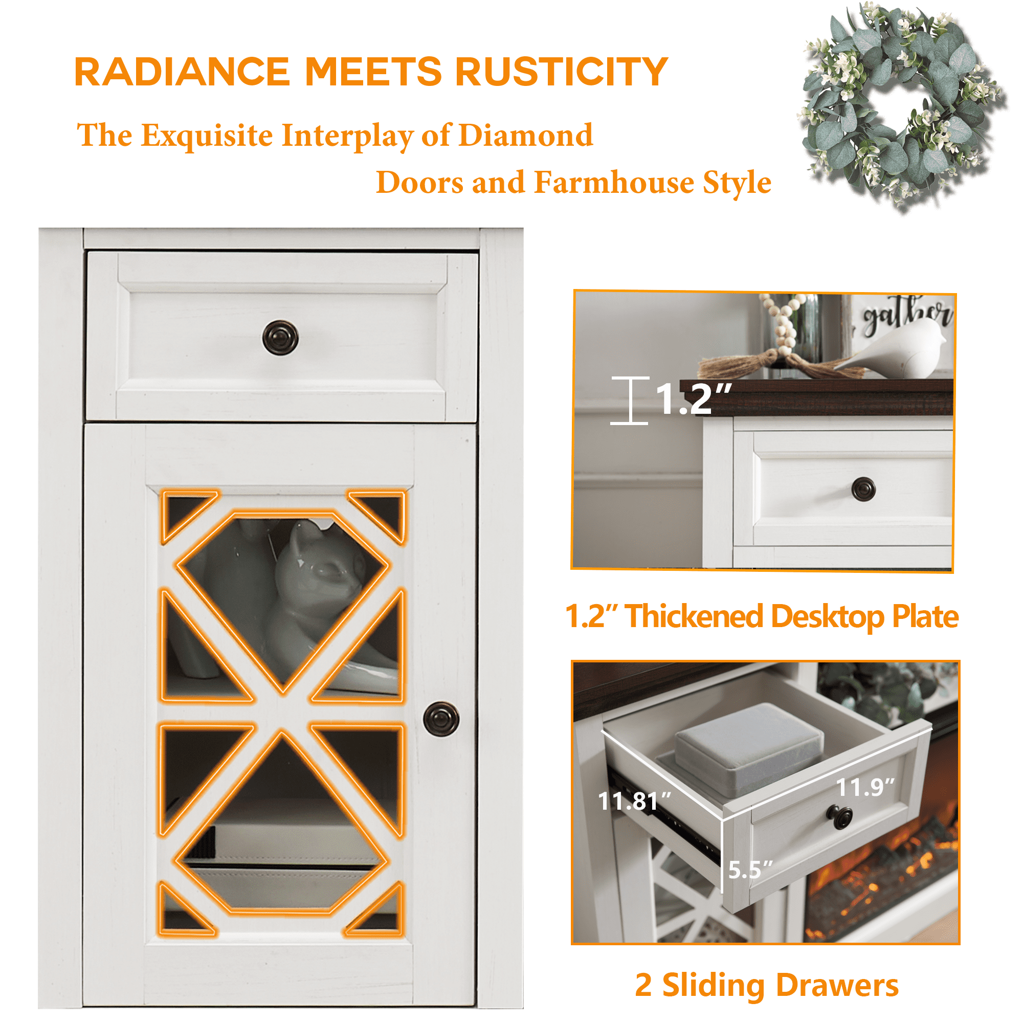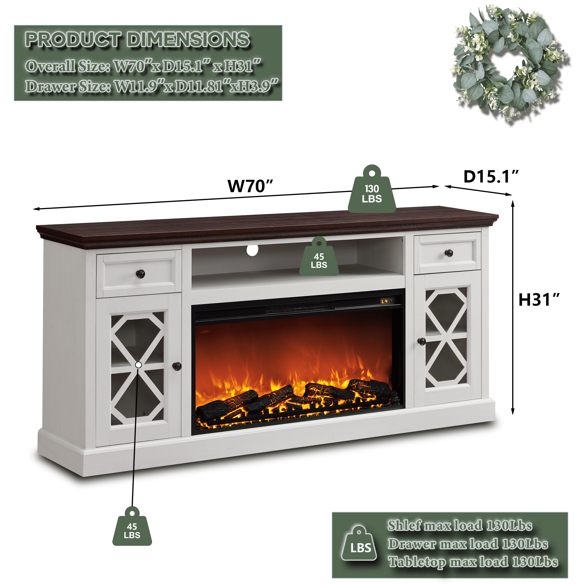 Feature: 【Overall Dimensions 】 31″ H x 70″ L x 15.1″ W, Drawr Dimensions:3.93″ H x 11.9″ L x 11.81″D, With drawers, the TV cabinet offers additional storage options, keeping your space tidy and orderly, while ensuring a touch of elegance and sophistication in your home decor 【Ignite Your Space】 Experience the warmth and beauty of a 36-inch large screen fireplace with stunning 3D simulated flames. Transform your living space into a cozy retreat, as the lifelike flames flicker and dance, creating a mesmerizing ambiance. The fireplace TV cabinet brings a touch of luxury and relaxation, while adding an elegant centerpiece to your home decor 【Unique Designs】 Embrace rustic charm and sophistication with farmhouse-inspired fireplace TV stand featuring diamond panel doors. This exquisite design merges timeless elegance with the cozy warmth of a 36-inch large screen fireplace. Immerse yourself in the timeless beauty and warmth this unique cabinet offers, making it a stunning addition to any living space 【Easy to Assemble】Each hardware component has its own individual package and code. Clear installation instructions allow you to immerse yourself in the installed game. 1-2 adults can complete the work within 1-2 hours 【Service and Packaging】 Please note that due to the difficulty of shipping large items, items will be sent in two packages and they may be delivered at different times. The package is carefully wrapped with shock-absorbing foam and protective wooden boards to ensure safe delivery. If there are any issues with your package. Our professional customer service team will respond within 24 hours to provide you with a satisfactory solution Specifications: Color: Brown/Grey/White Brand: SinCiDo Style: Farmhouse Table design: Bedroom TV Stand Number: 3 Drawers Size: 31″ H x 70″ L x 15.1″ W Package included: 1x Fireplace TV Stand Notes: When receiving the goods, please confirm the product according to the listing of instructions. Once you find less pieces, please provide relevant pictures to contact us. We will deal it in the time. Please install goods with the instruction manual.