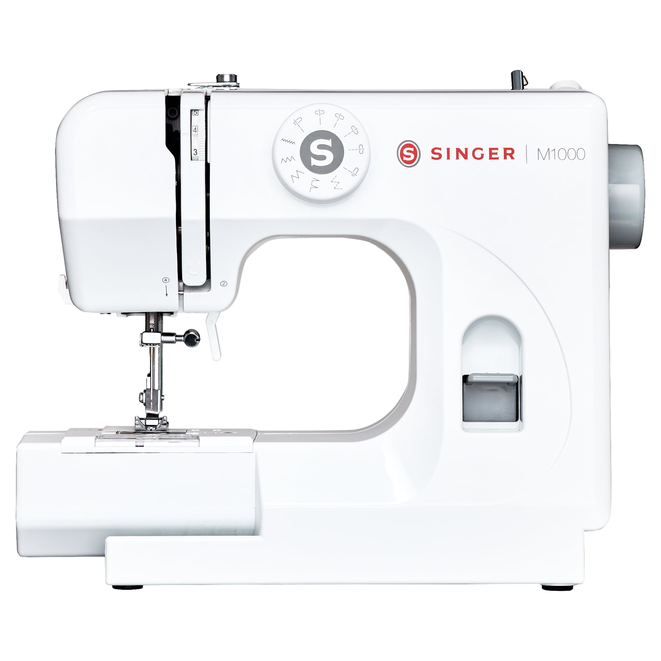 32 STITCH APPLICATIONS: Includes essential stitches for key sewing techniques (straight stitch and zigzag options, blind hem, and multi-stitch zigzag). TOP DROP-IN BOBBIN: Easy to thread and easy to see! The transparent bobbin and cover allow you to monitor your thread supply so you don’t run out of thread in the middle of a seam. EASY STITCH SELECTION: Turn the Stitch Selector Dial to the stitch you want and you’re ready to start sewing. QUICK AND EASY THREADING: Get started sewing faster with easy-to-follow threading guides. FINGER GUARD SAFETY: Helps keep fingers from getting too close to the needle for an added measure of safety, if desired. PERFECT FOR MENDING AND LIGHT SEWING: At only 5.5 pounds, the super cute SINGER M1000 mending machine is a lightweight, portable sidekick for the sewist-on-the-go! THE RIGHT STITCHES FOR MENDING PROJECTS: With 32 Stitch Applications, mending and garment repairs of lightweight fabrics are easier than ever. The SINGER® M1000 includes essential Stitch Applications from zig zags to a blind hem, providing you the right stitch for your mending projects. REVERSE LEVER: Press and hold to sew stitches in reverse to easily secure seams. ADJUSTABLE THREAD TENSION: Fine tune stitches as needed for fabric, thread or sewing technique.